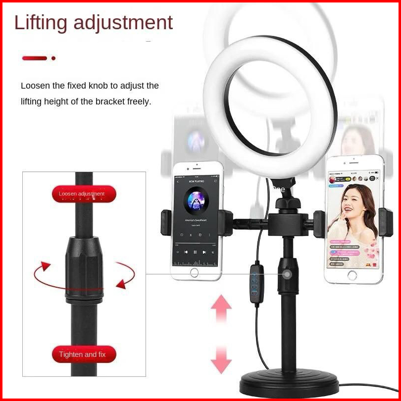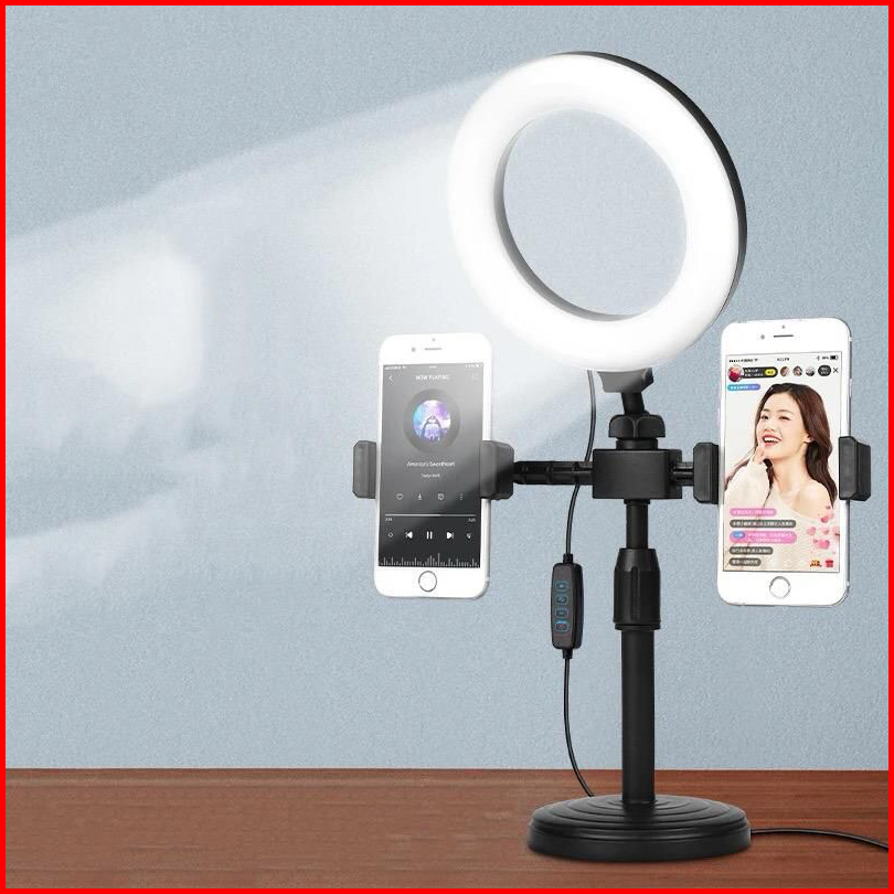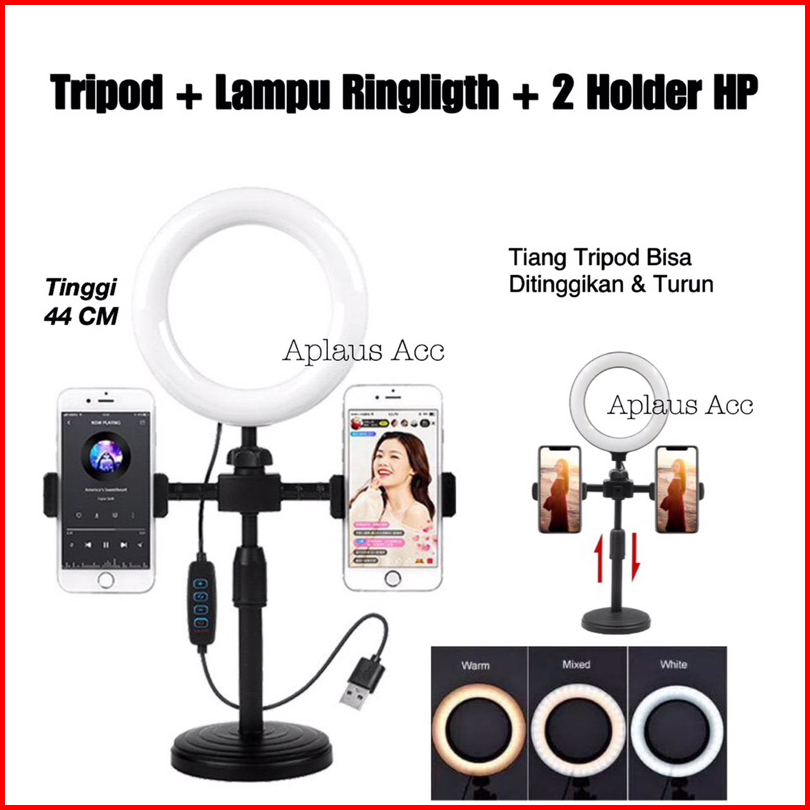 Tripod 28cm 2 Holder Hp Lampu Ringligth 16cm Stand Hp Selfie Vlogging Podcast Review Nonton