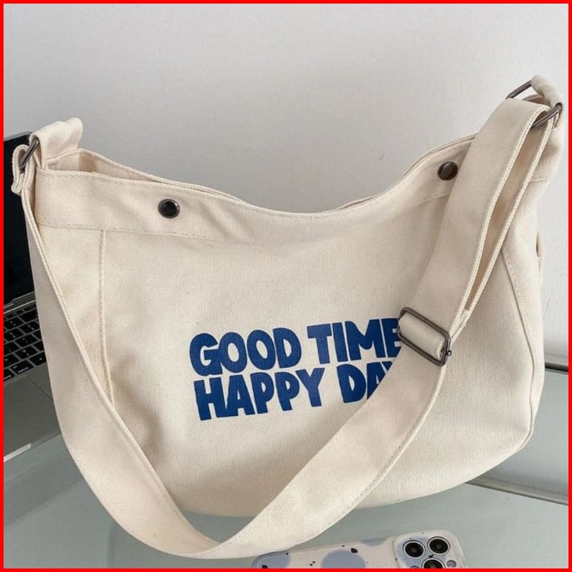 Tas Selempang Bahu Kanvas Canvas Pria Dan Wanita Motif Good Times - By Overpassion