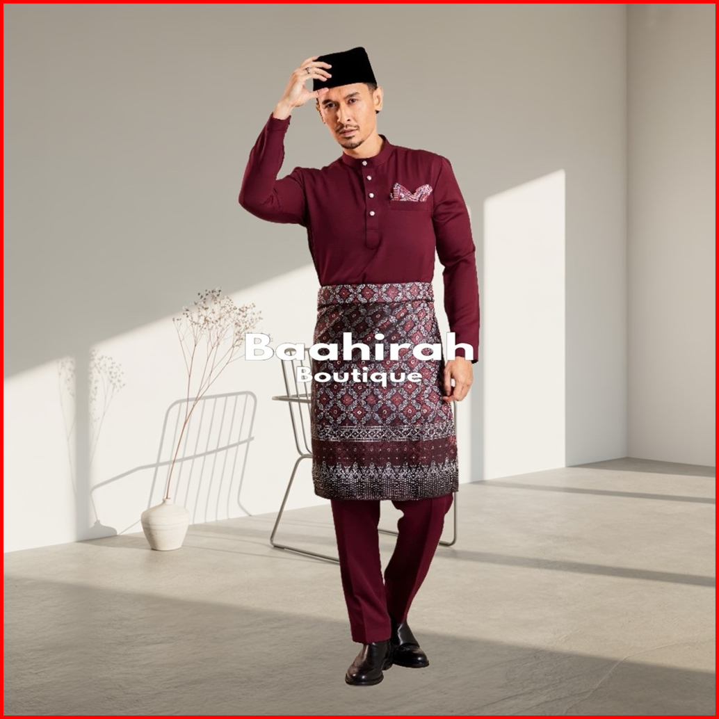 Set Baju Celana Teluk Belanga Cekak Musang Pria Melayu Kurung Setelan Pakaian Adat Malaysia Riau Koko Muslim Satin Velve