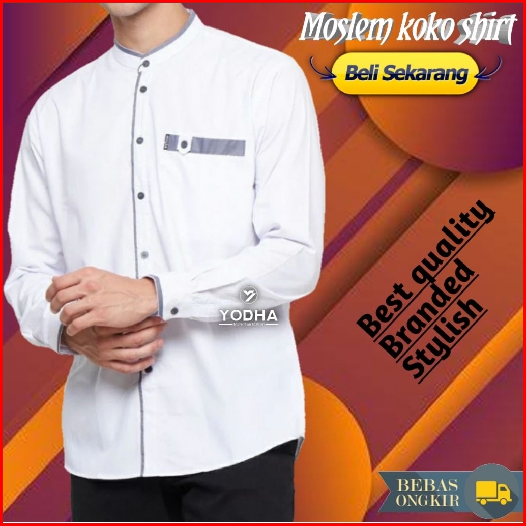 Baju Koko Pria Putih Kemko List Polos Pria Panjang Baju Koko Dewasa Basic Shanghai Seragam Pondok