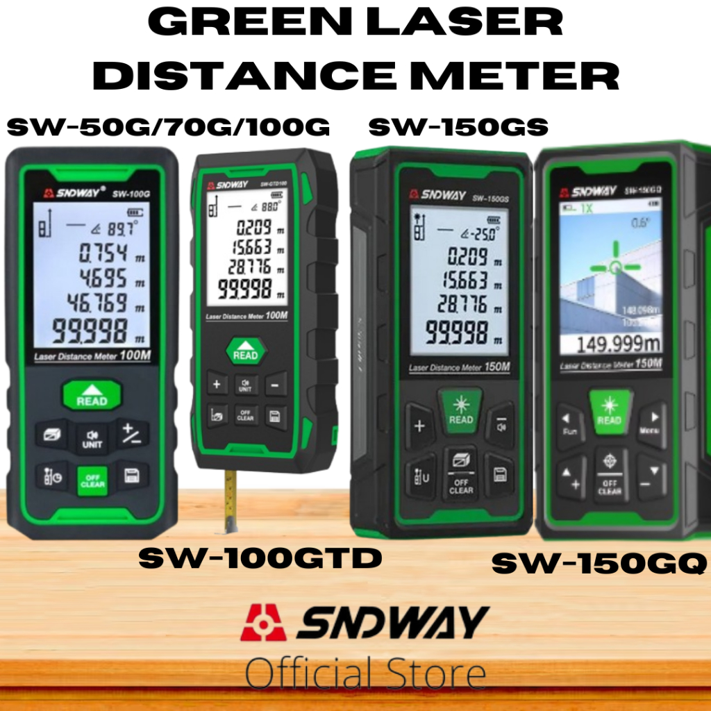 Sndway Meteran Digital Green Laser Hijau Outdoor Distance Meter 50/70/80/100/150 Meter Sw-50G/70G/100G/100Gtd/150Gs/80Gq