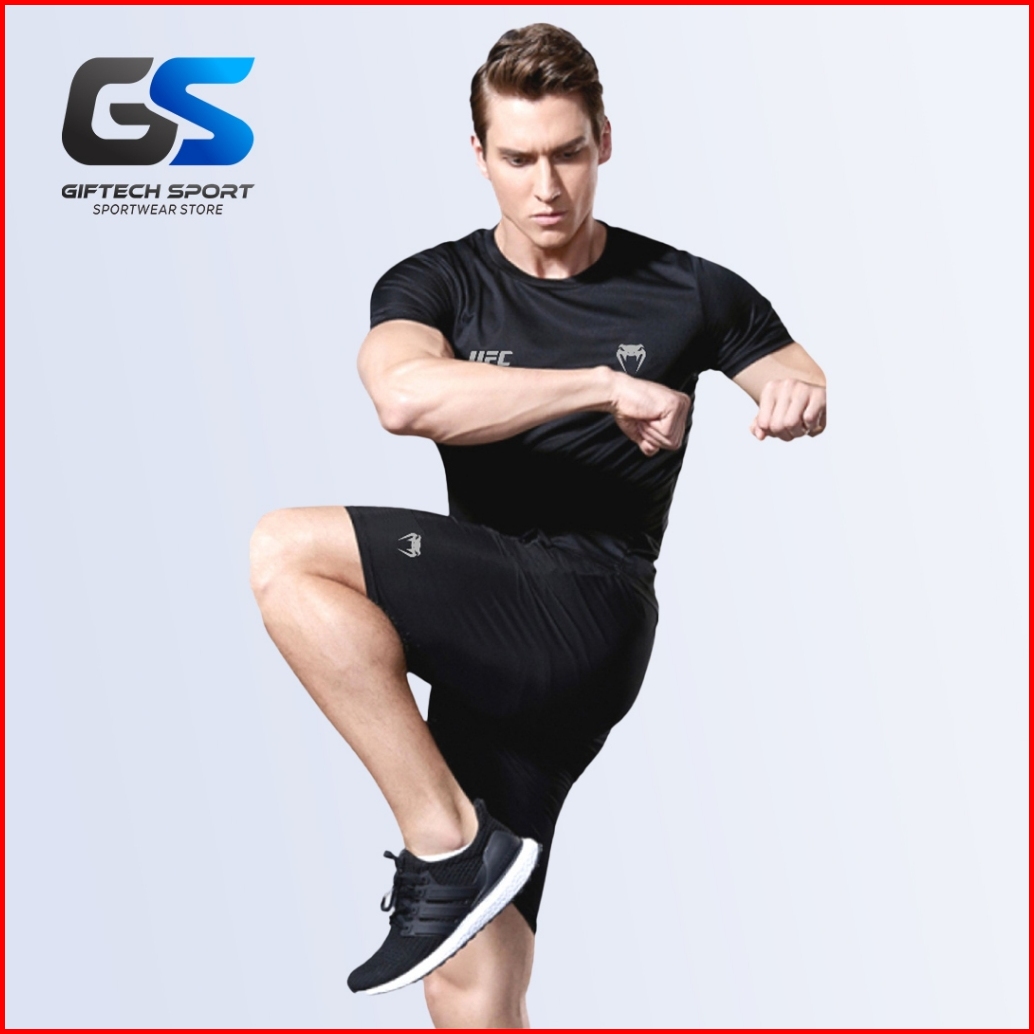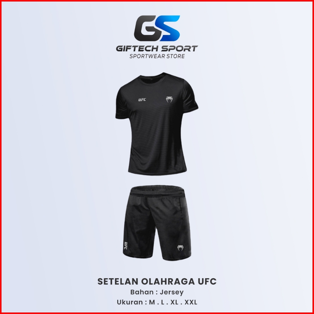 Baju Olahraga Pria 1 Set Kaos Lengan Pendek Dan Celana Olah Raga Ufc Dryfit Lari Jogging Futsal Badminton Volly