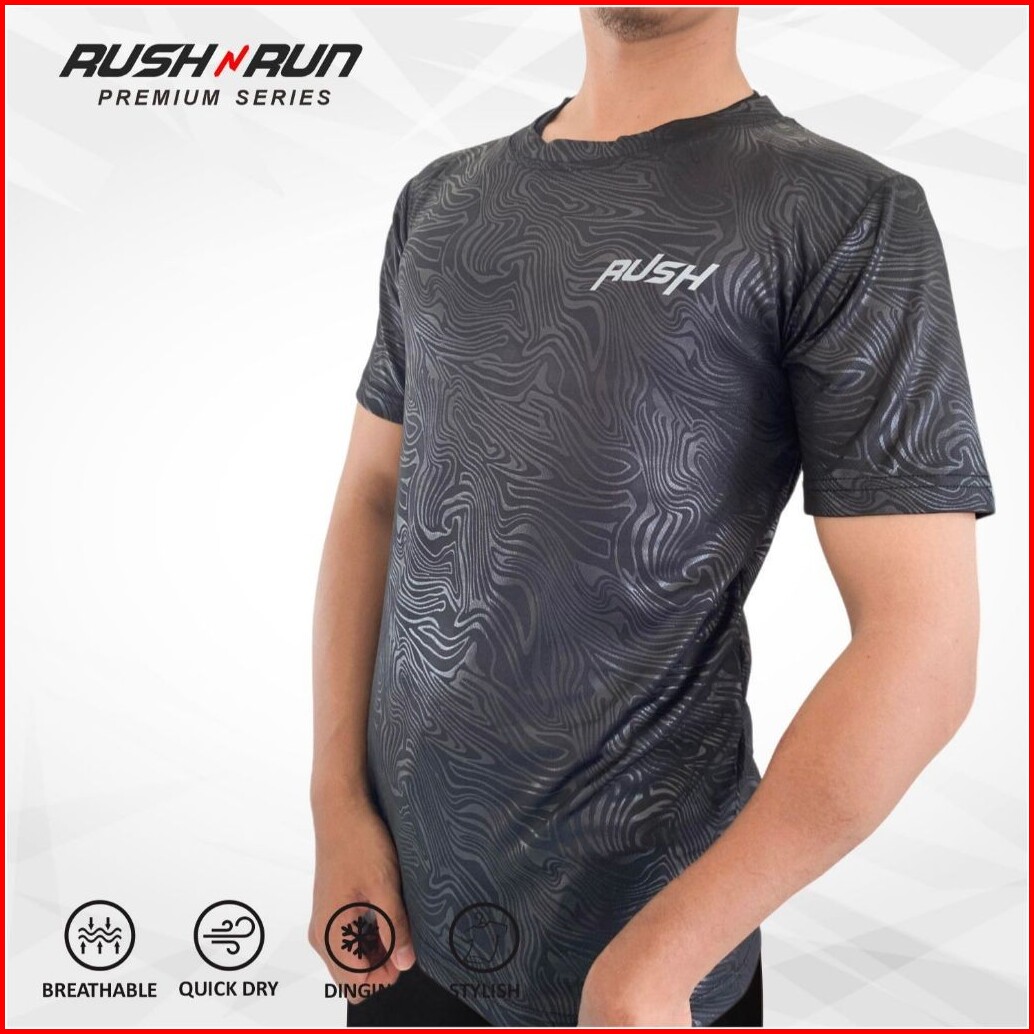 Rush N Run Baju Kaos Jersey Olahraga Pria Training Shirt Bahan Dryfit Motif