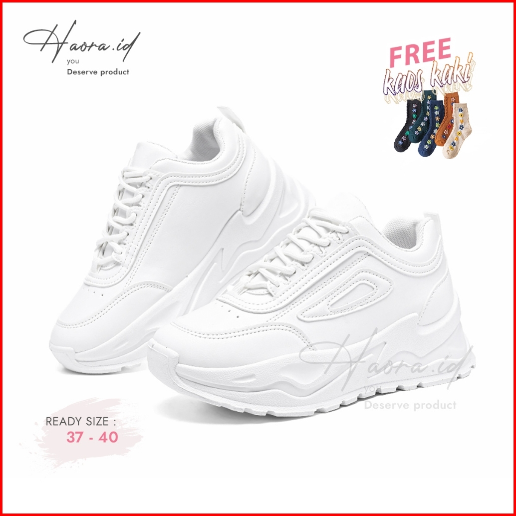 Sepatu Sneakers Wanita Hitam Putih Kasual Sport Shoes White Black - Hr08