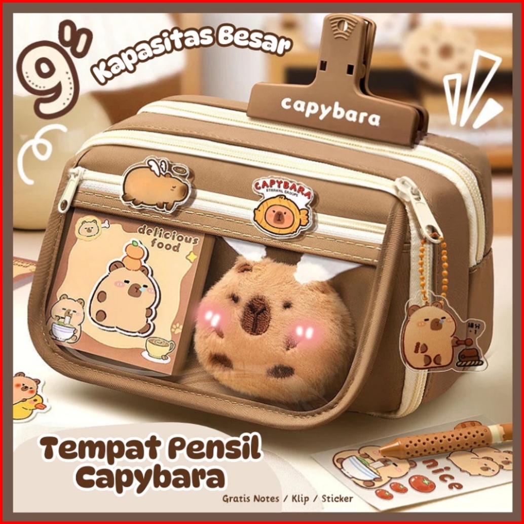 Tempat Pensil Capybara Aesthetic Korea Kapasitas Besar Free Notes Klip Sticker Kotak Pensil Sekolah Kantor Lucu Multifun