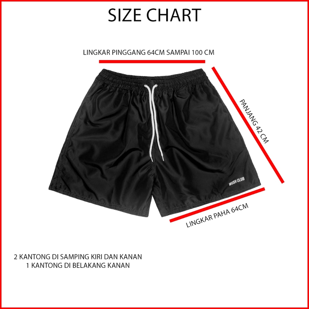 Wush Club Celana Pendek Parasut Pria Wanita Kolor Boxer Distro Santai Running Lari Zoro Hitam