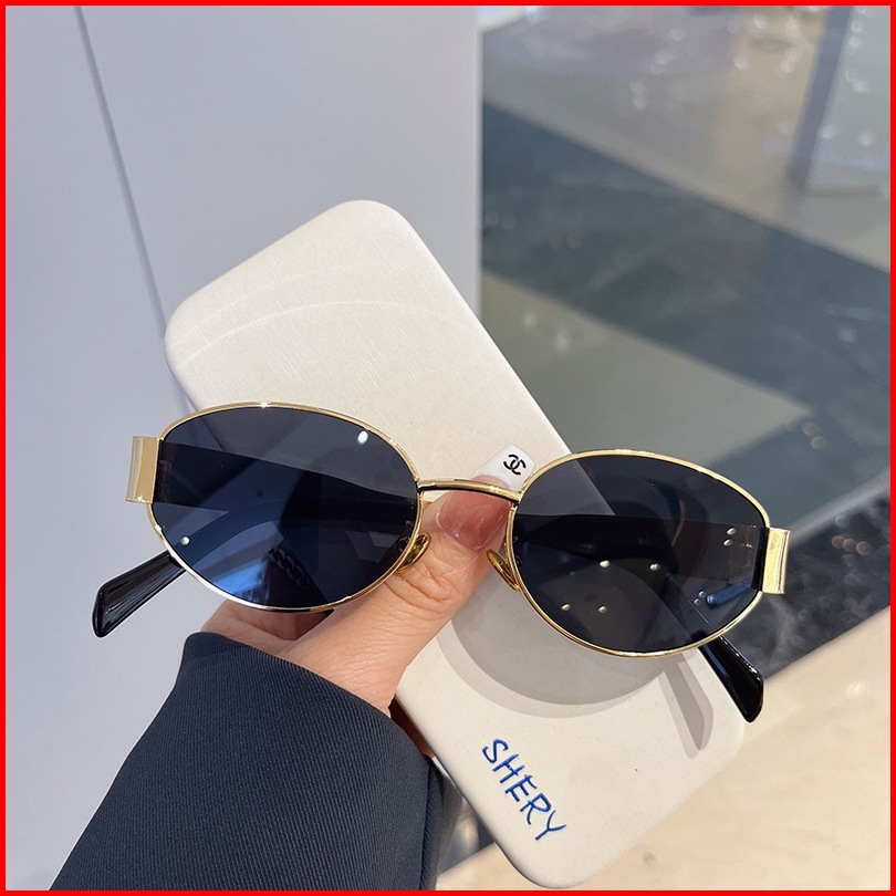 Kacamata Hitam Gaya Korea Oval Wanita Premium Metal Bingkai Kecil Kacamata Sunglasses