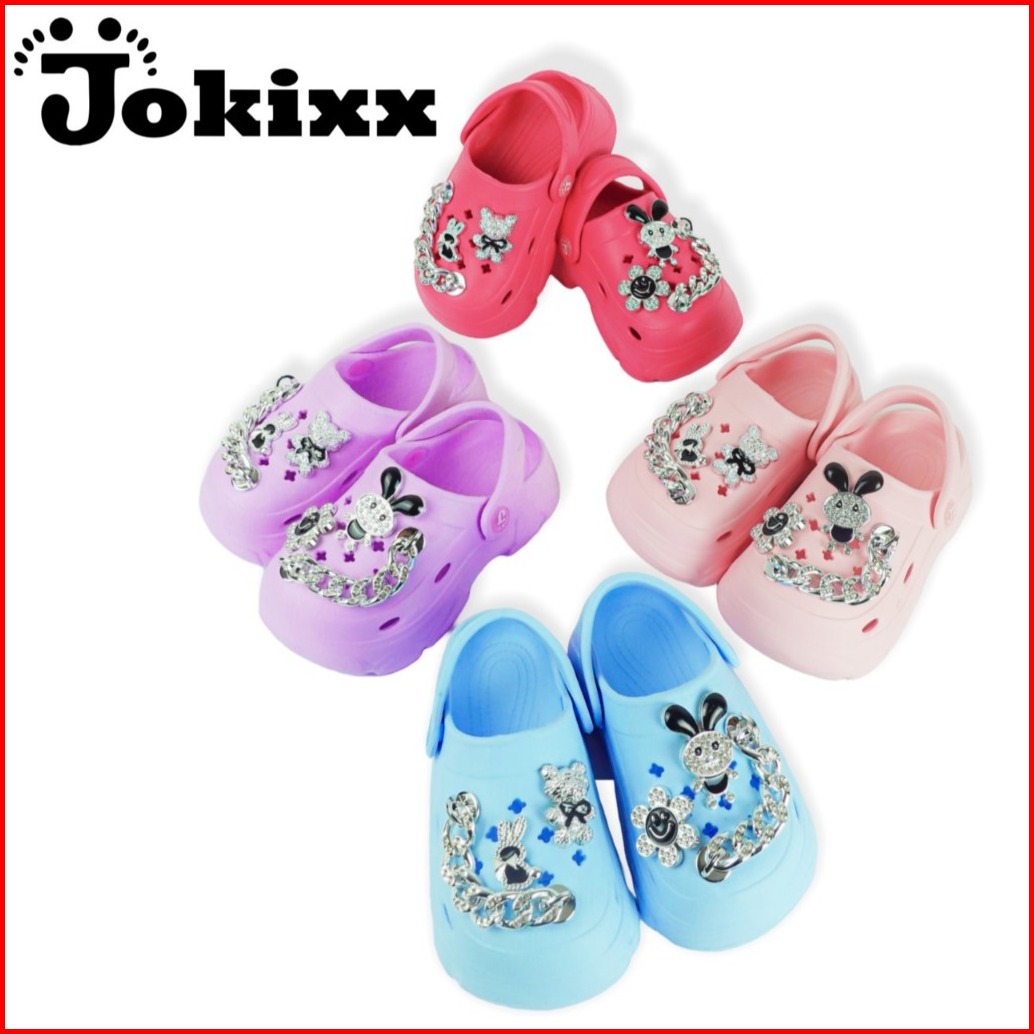 Jokixx Sandal Anak Cewek Eva Ban 2 Rantai Rabbit Bear Silver Nyaman Empuk 33k-2 33t-2