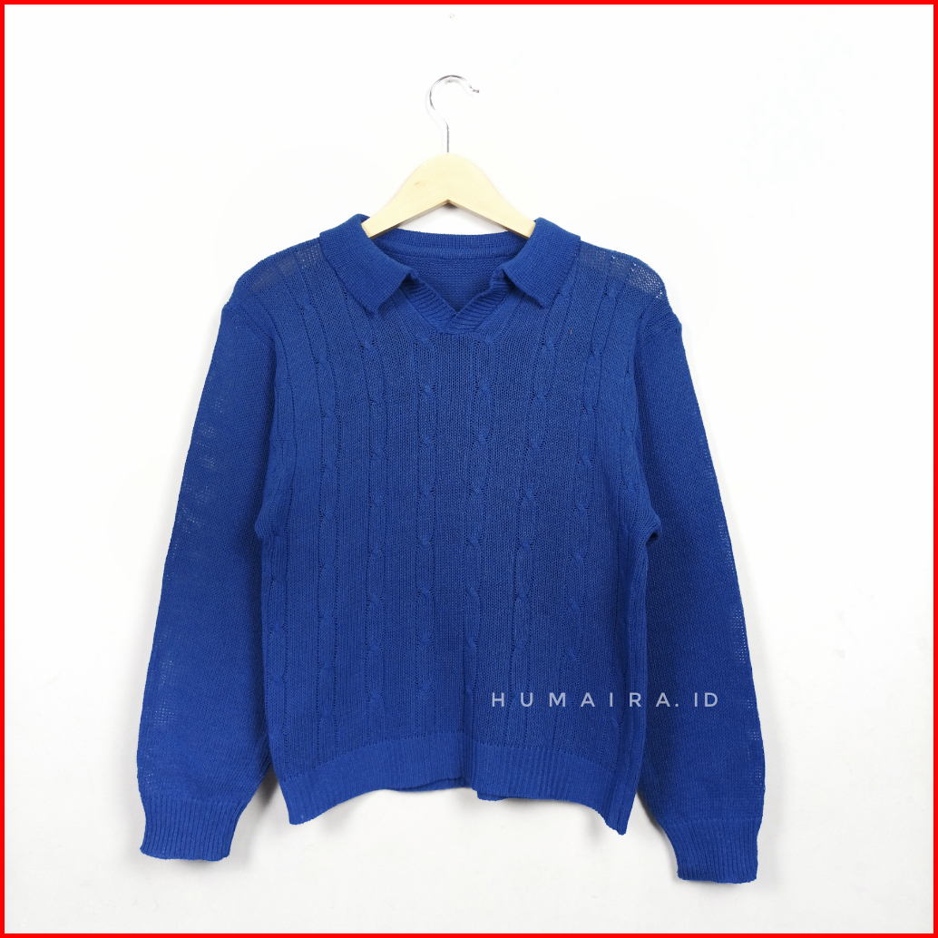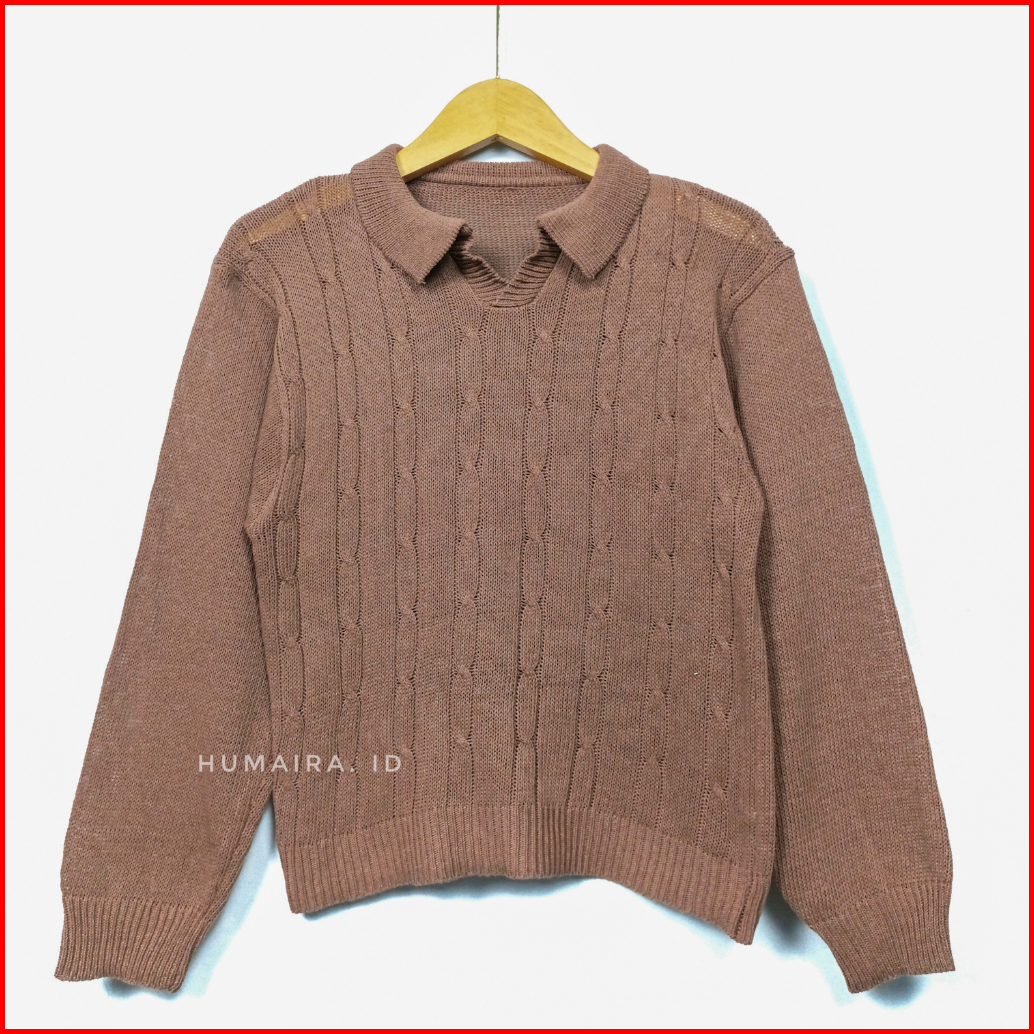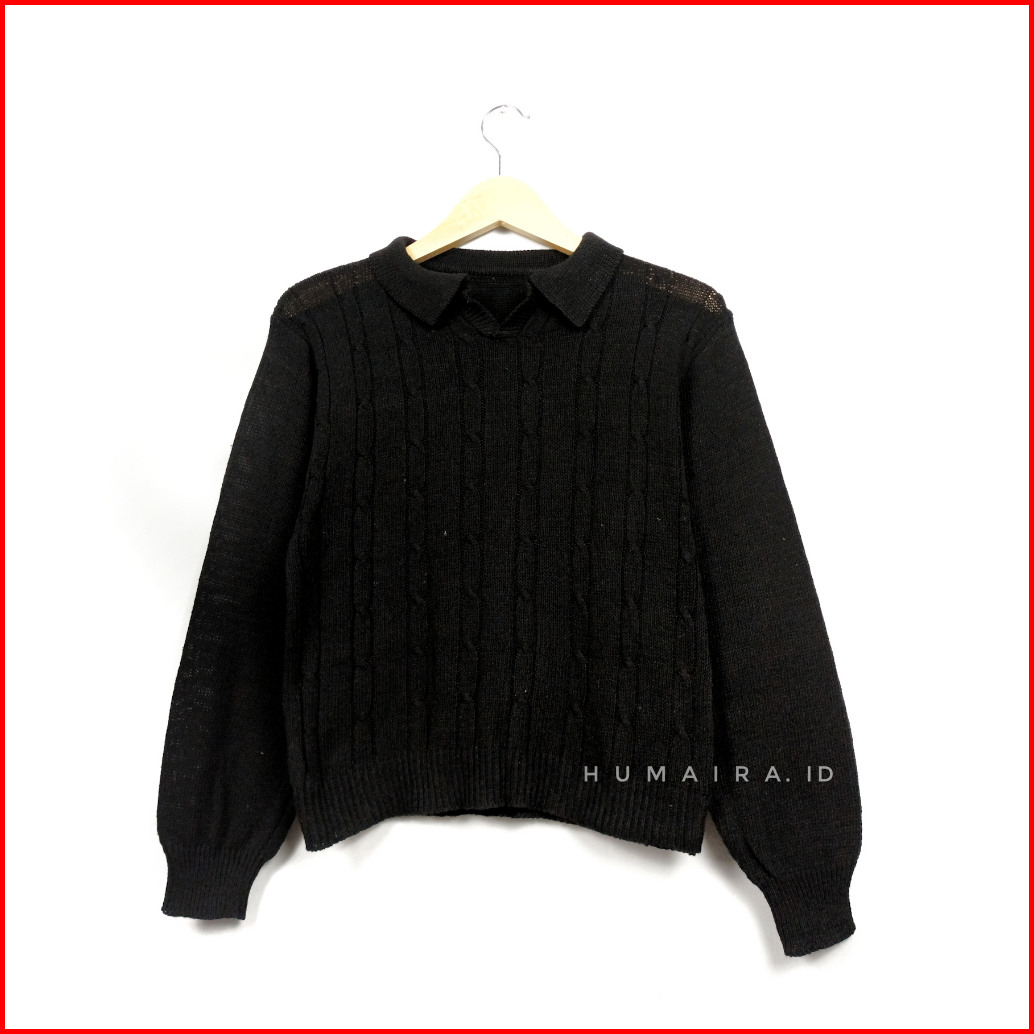 Sweater Rajut Wanita Clara Polo Cable Blouse Atasan Wanita Kerah Polo Sweater Crop Tebal