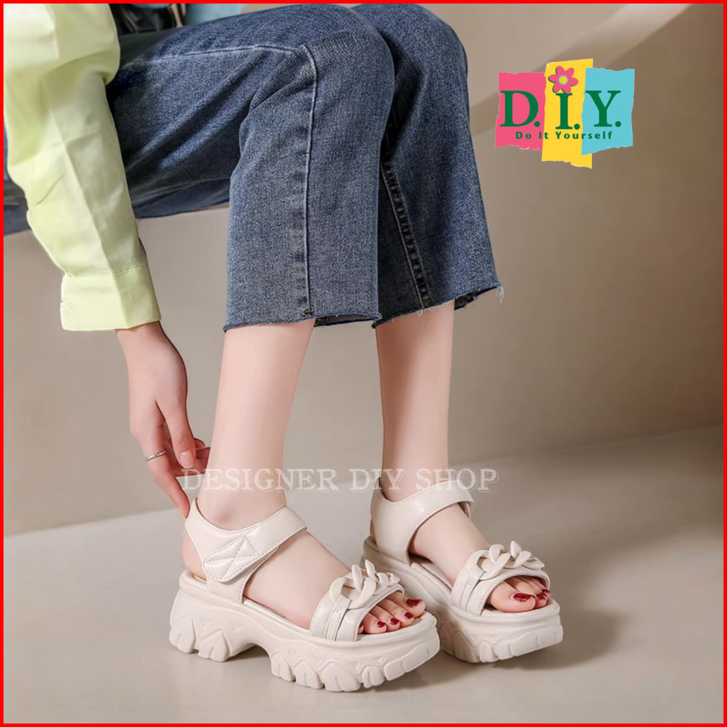 New Arrival Diy-sandal Wanita Korea Wedges Sendal Jelly Tebal Rantai Curly Permium Terbaru