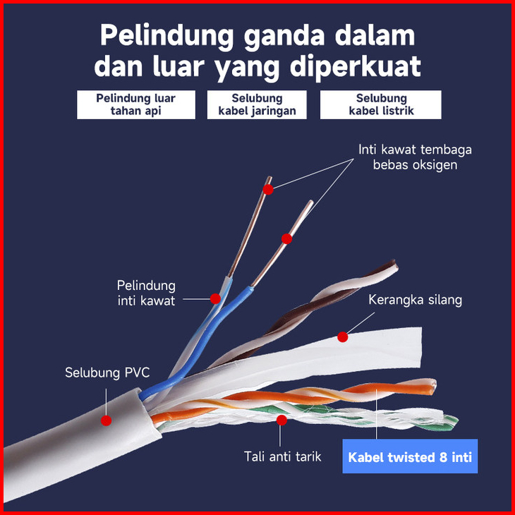 Pixeilink 1000mbps10m-80m Kabel Ethernet Berlapis Cat6 Rj45 Utp Kabel Internet Lan Luar Ruang