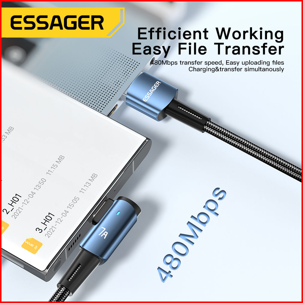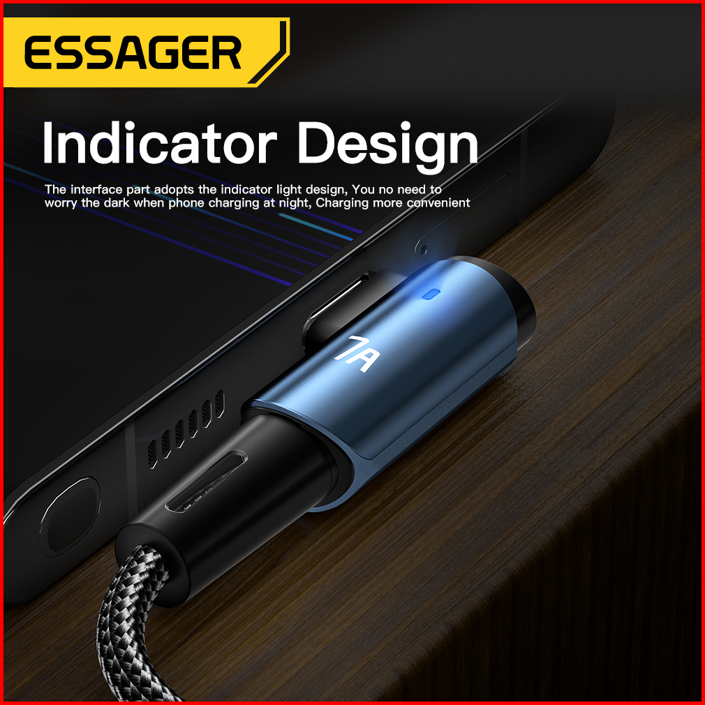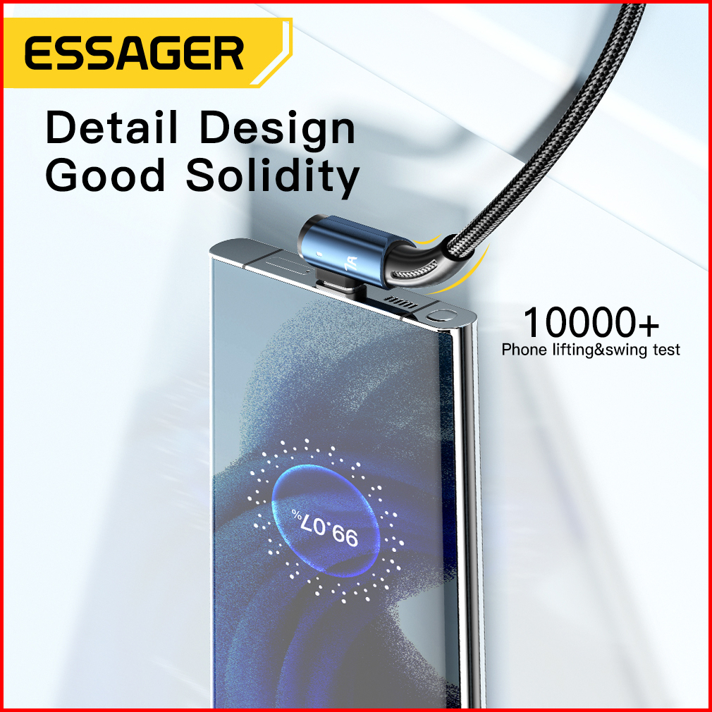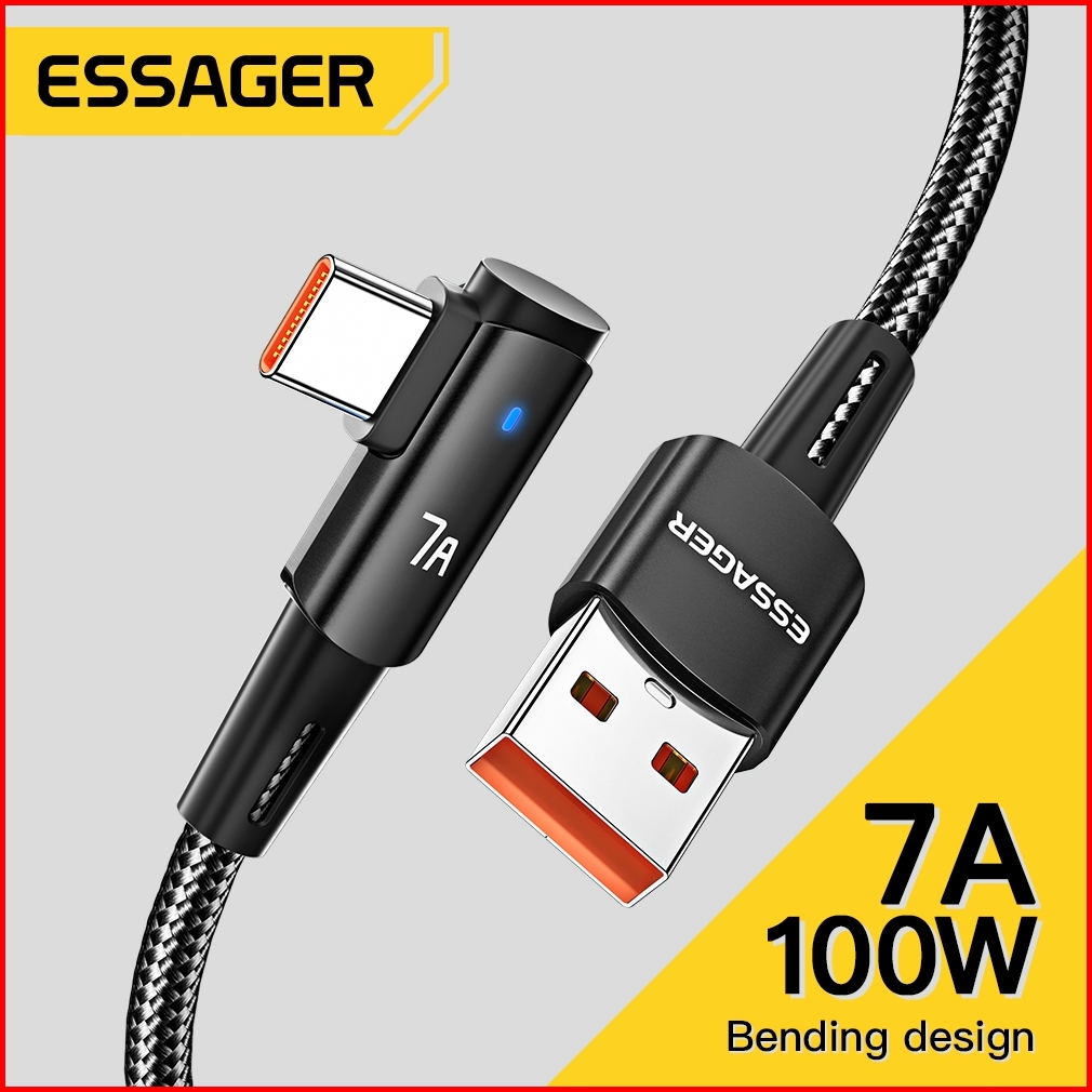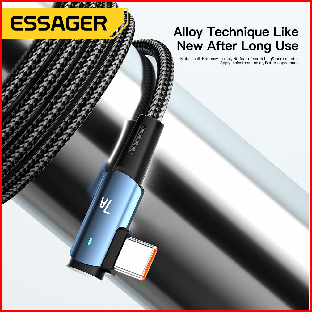 Essager Kabel Pengisian Cepat Usb Tipe C Sudut Kanan 90 7a 100w Untuk Ponsel Kabel Jalinan Nilon