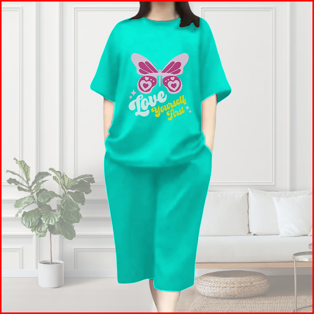 Charyatink - Love Setelan Celana Kulot 3 4 Baju Dewasa Wanita Bahan Katun Babyterry