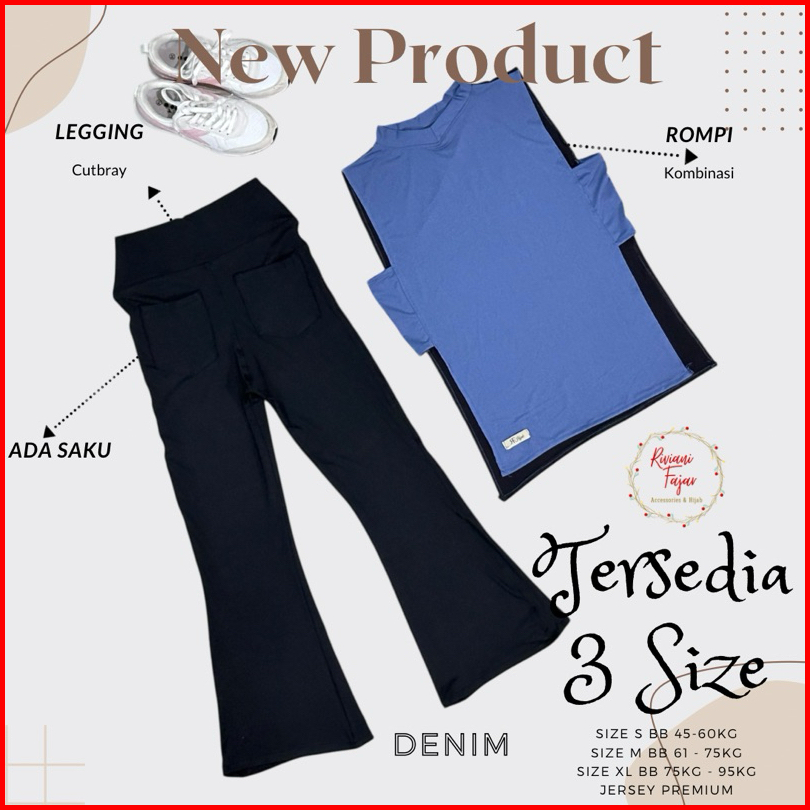 One Set Baju Olahraga 2 Warna Kombinasi Jersey Celana Cutbray Wanita Muslim Sporty