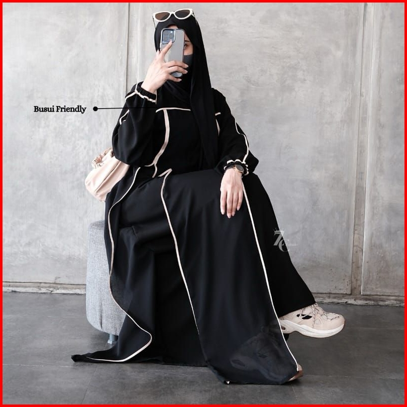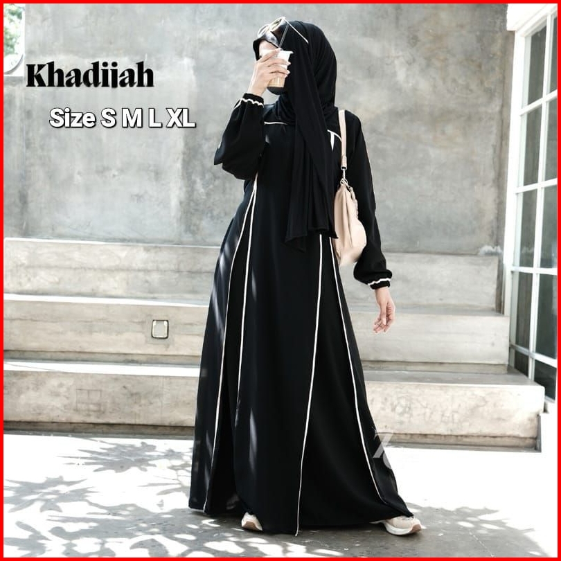 Fatimah Abaya Turkey Muslimah Gamis Umroh Hitam Jetblack Mix Ceruty Gamis Wanita