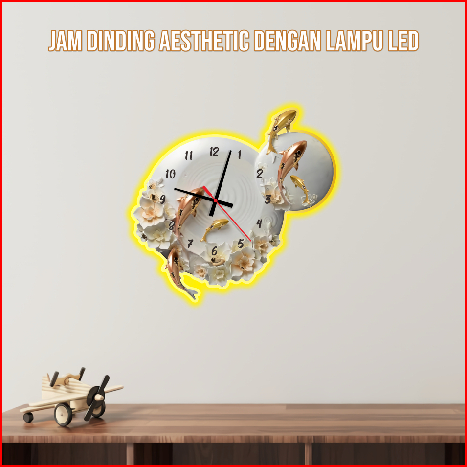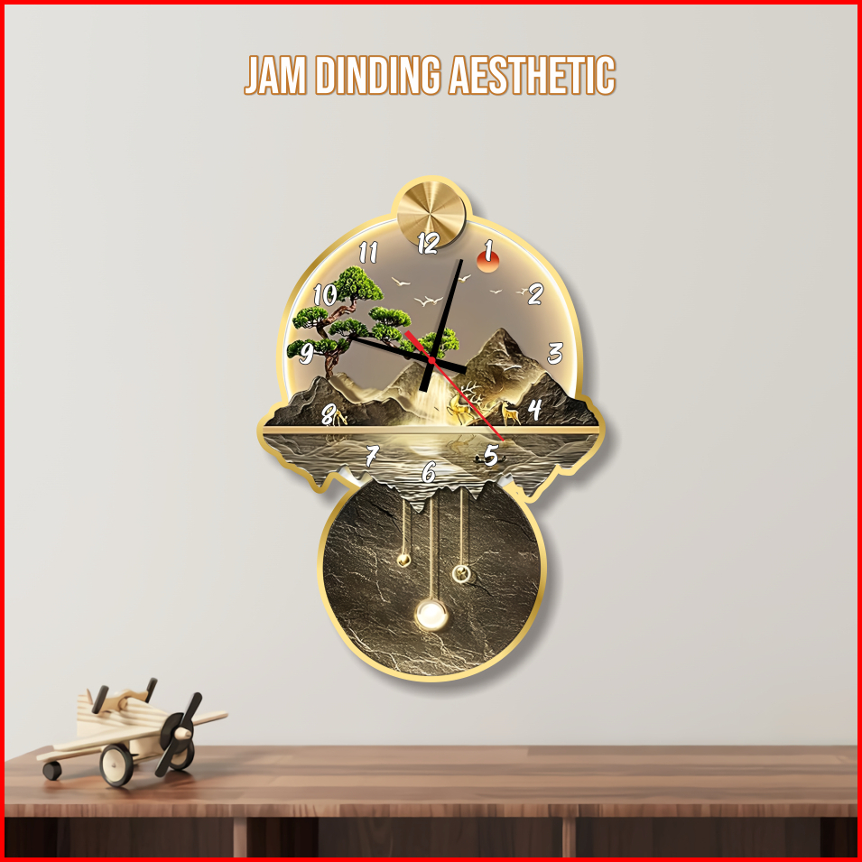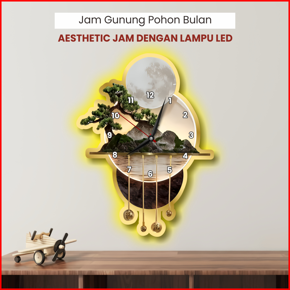 Jam Dinding Aesthetic Lampu Karakter Pohon Gunung Dekorasi Ruang Tamu Kamar Tidur