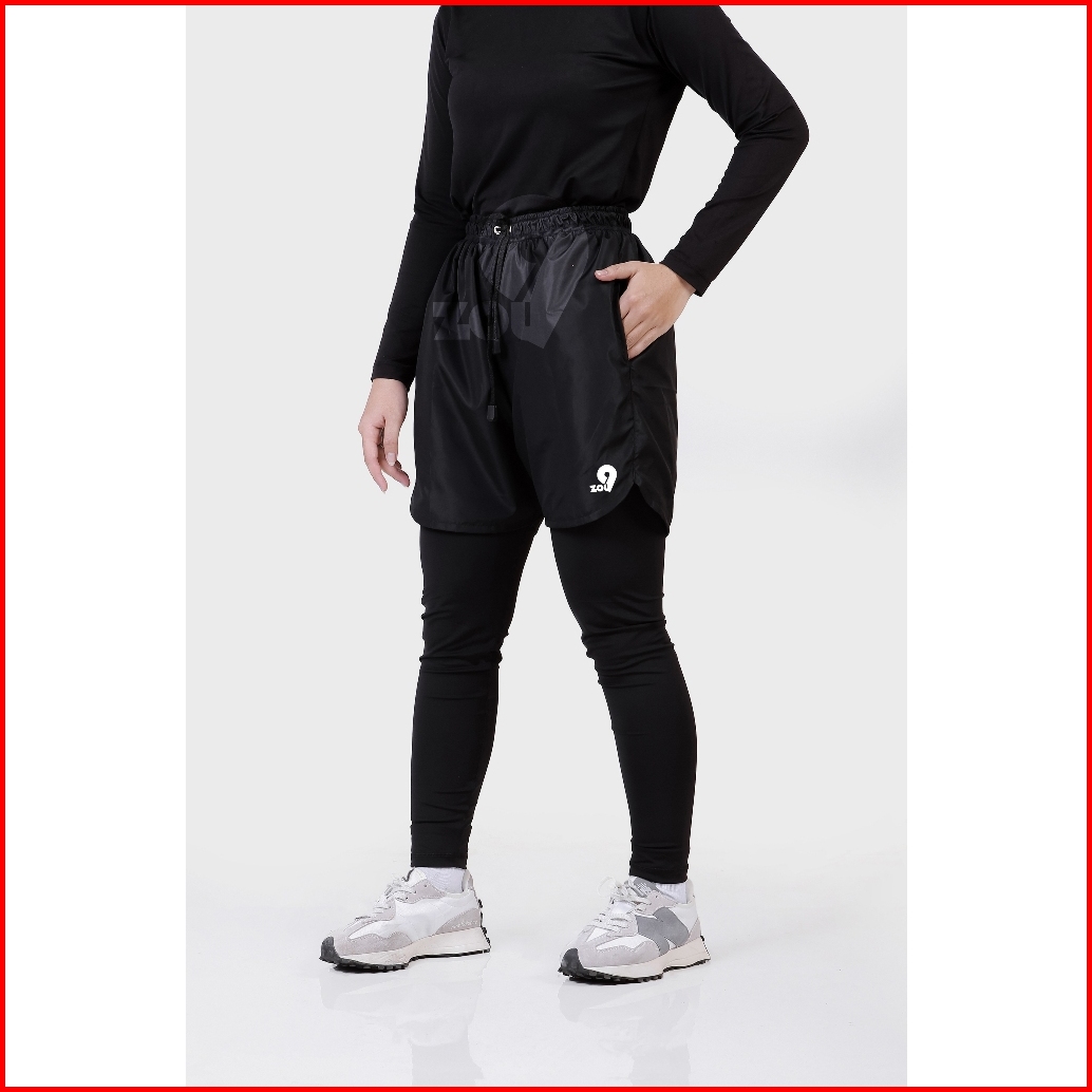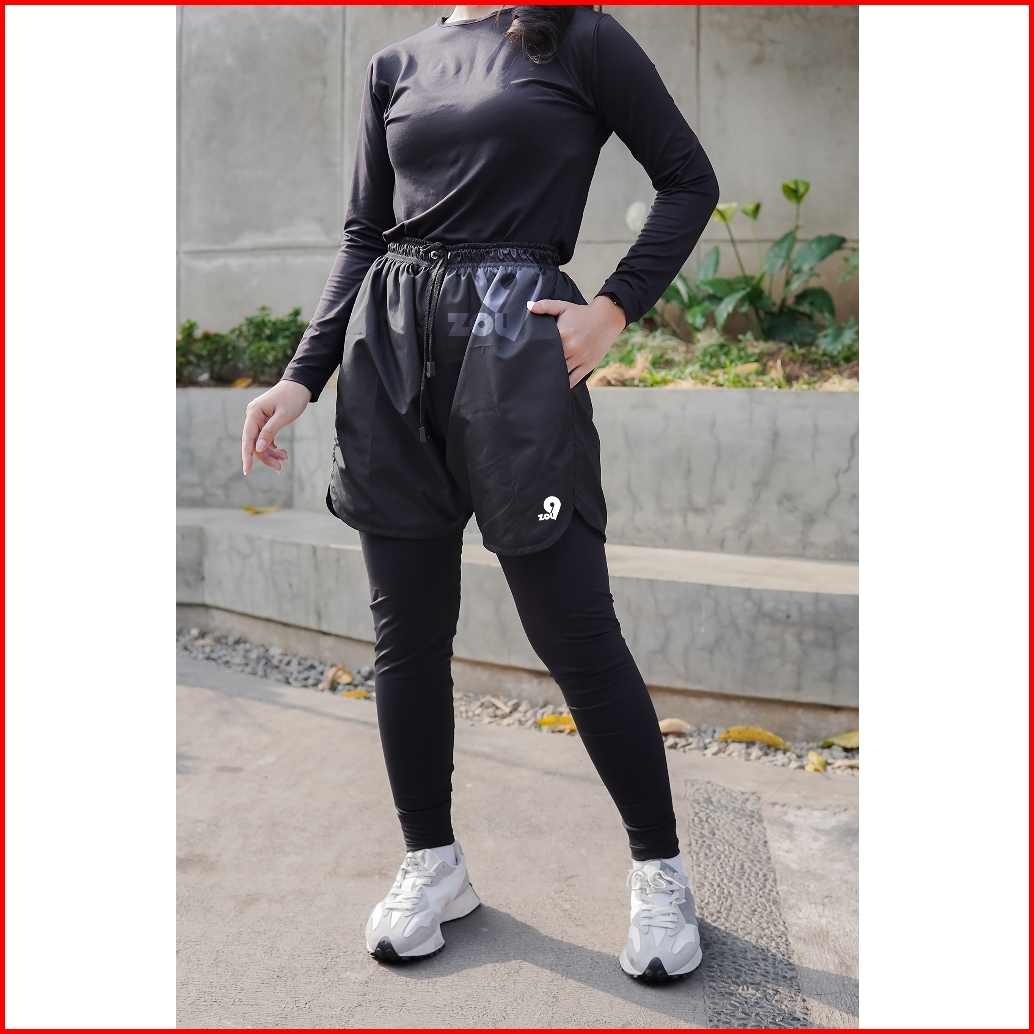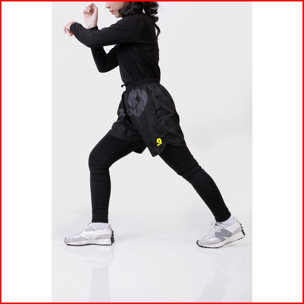 Celana Running Pendek Olahraga Wanita 2 In 1 Legging Panjang Gym Senam Zumba