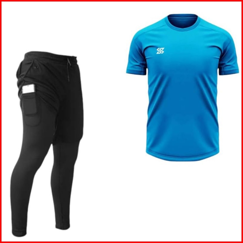 Stelan Baju Jersey Dan Celana Panjang 2in1 Badminton Gym Running Fitnes Voly
