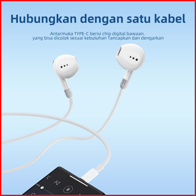 Kivee Headset Kabel Type C Gaming Music Earphone In Ear Warna-warni Desain Lucu