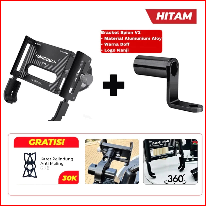 Holder Gub P30 Breket Phone Holder Hp Sepeda Motor Gub Alumunium Alloy Tempat Hp Dudukan Hp Sepeda Motor Gub Holder Gub