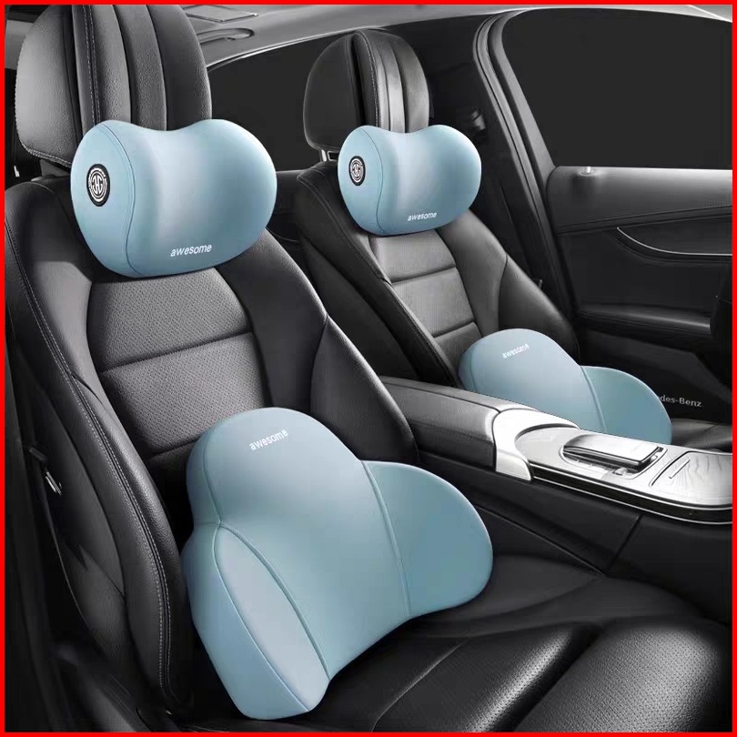 Readybantal Leher Mobil Sandaran Leher Penopang Busa Memori Set Bantal Pinggang Bantal Leher Mobil Kualitas Kulit Premiu