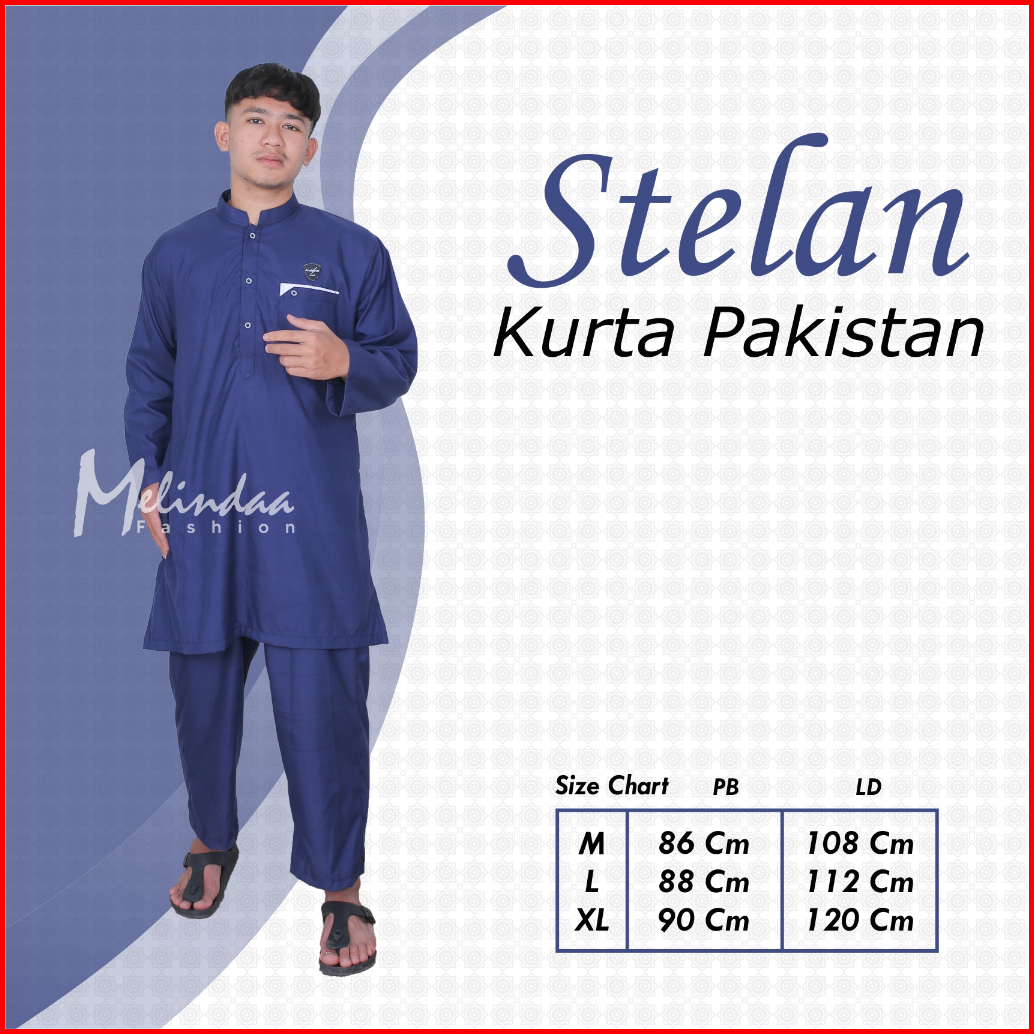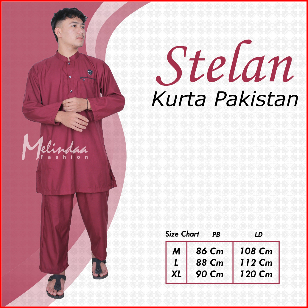 Baju Koko Stelan Kurta Pakistan Pria Dewasa Remaja - Oneset Baju Koko Muslim Lengan Panjang Kancing Strip Dan Saku