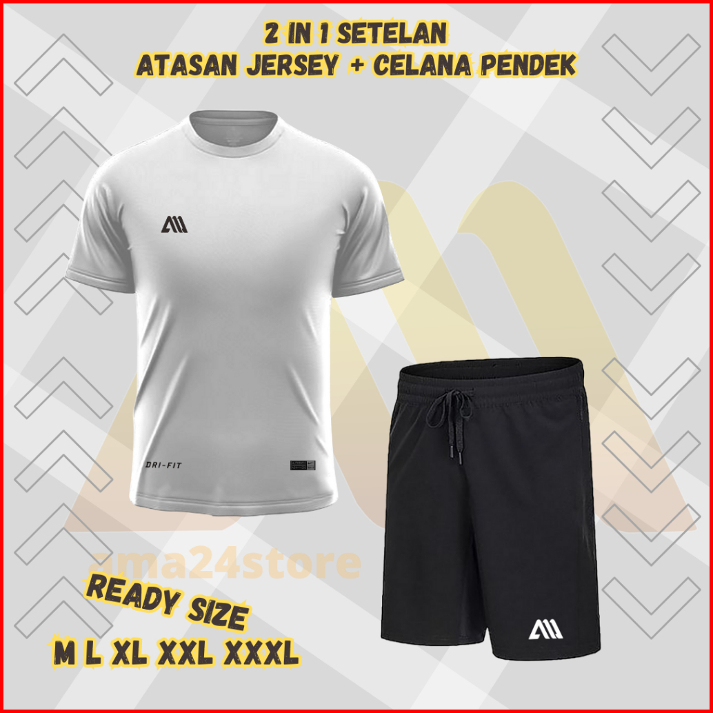 Ama Setelan Olahraga Atasan Jersey Baju Celana Pendek Futsal Sepakbola Fitnes