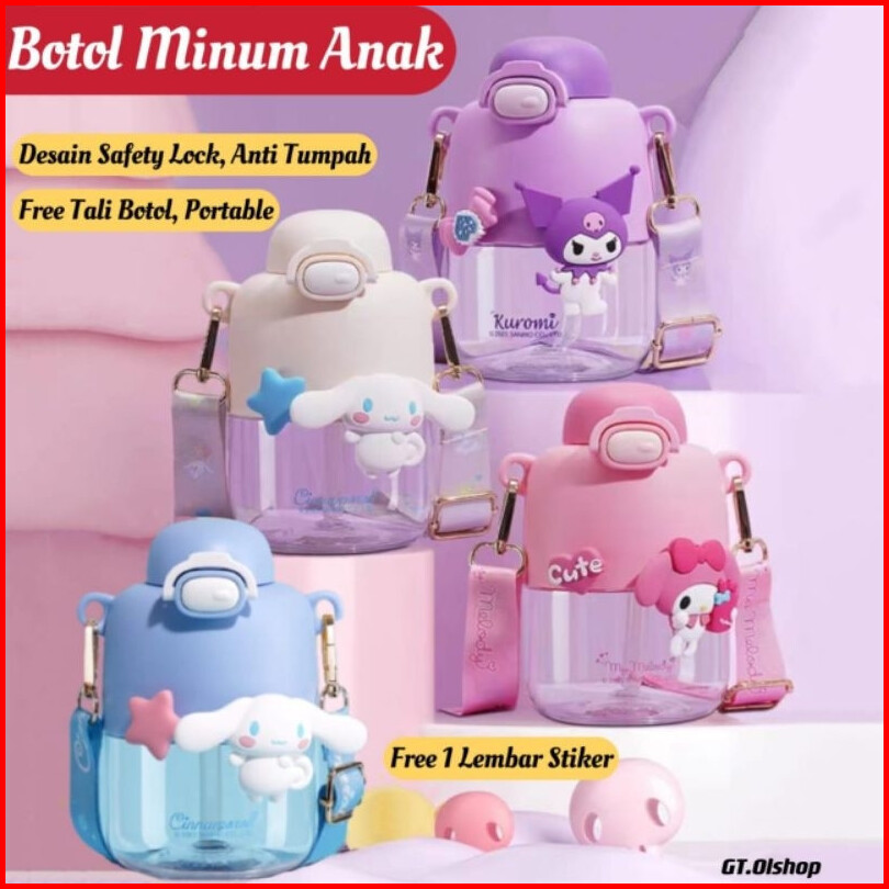 Botol Minum Sanrio Free Stiker Lucu Tempat Minum Motif Cinnnamoroll Kuromi Melody Jumbo Tali -2309