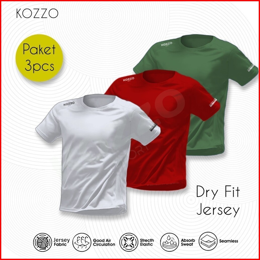 Paket 3 Pcs Kaos Baju Olahraga Pria T-shirt Jersey Lari Kozzo Bahan Dry Fit Breathable Quickdry