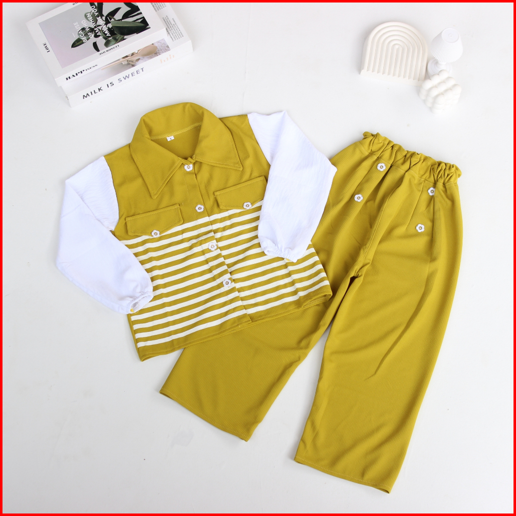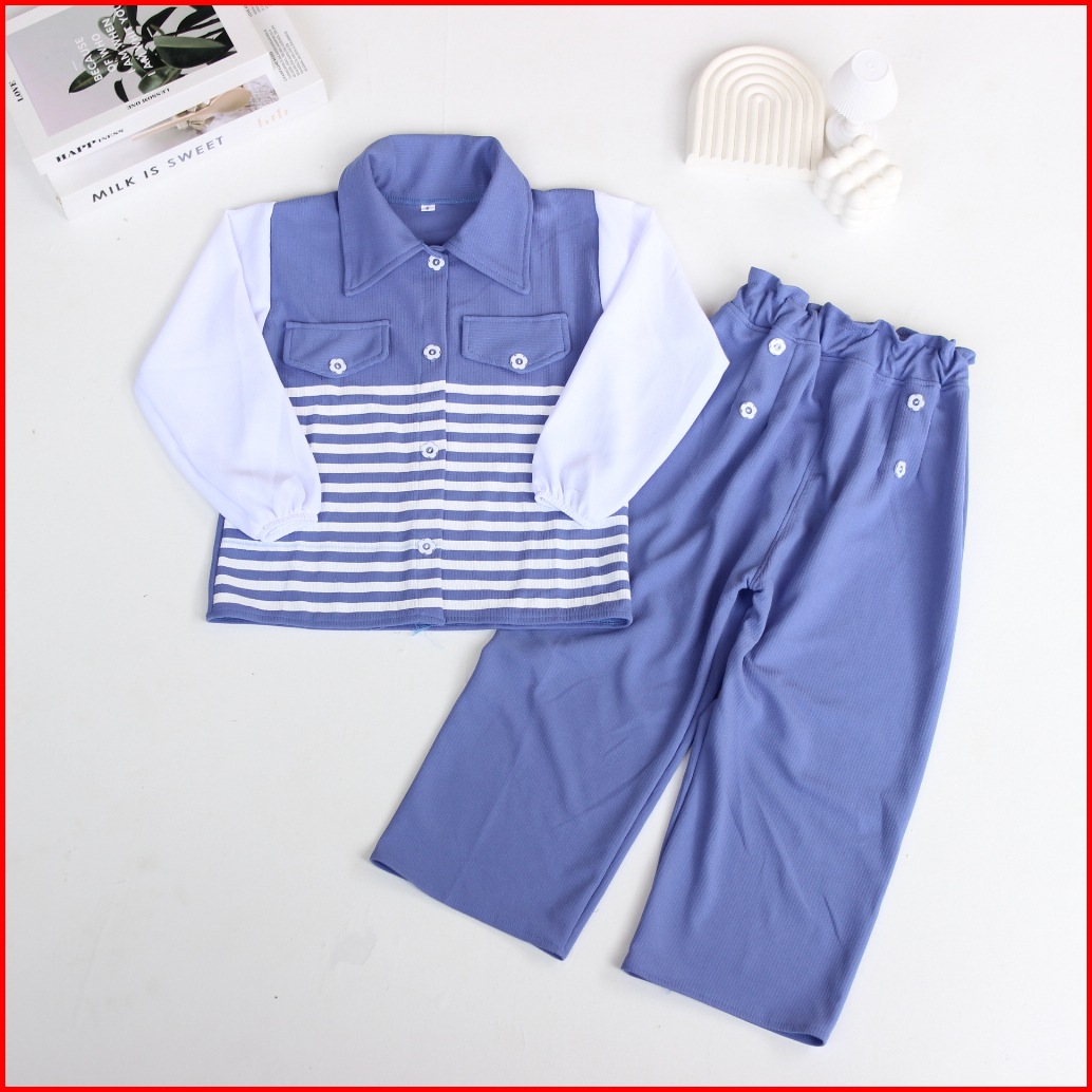 Setelan Anak Perempuan Camila I Motif Salur Bahan Knit 3-12 Tahun Fashion Anak Cewe