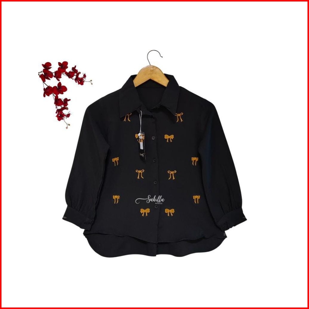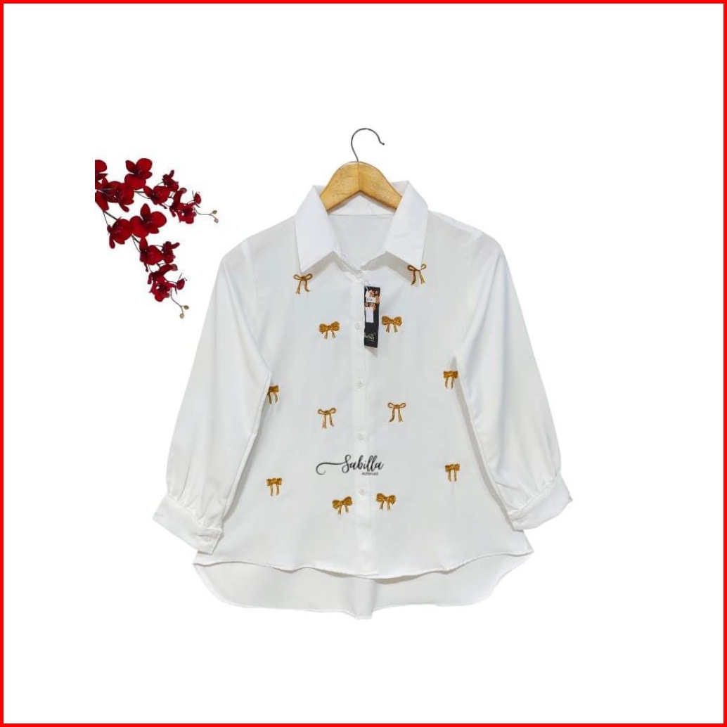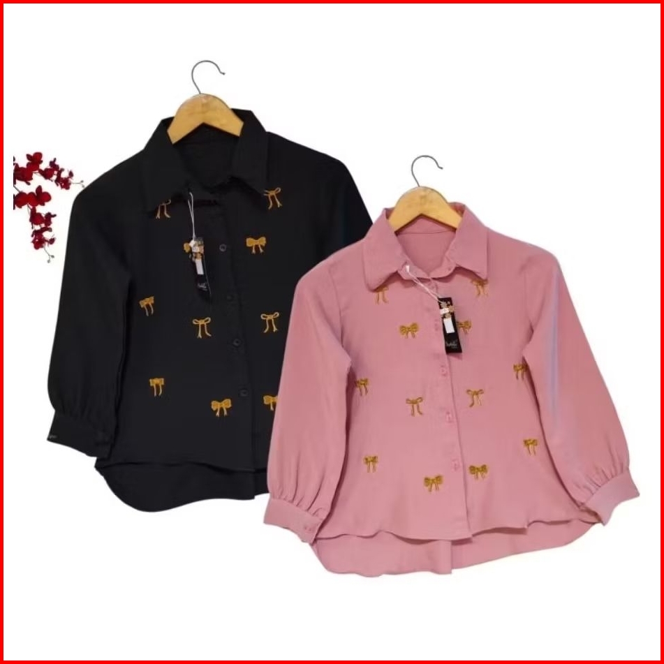158 Atasan Kemeja Anak Bordir Pita Atasan Shakila Anak Usia 7-14 Tahun