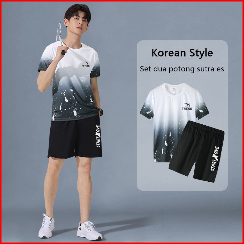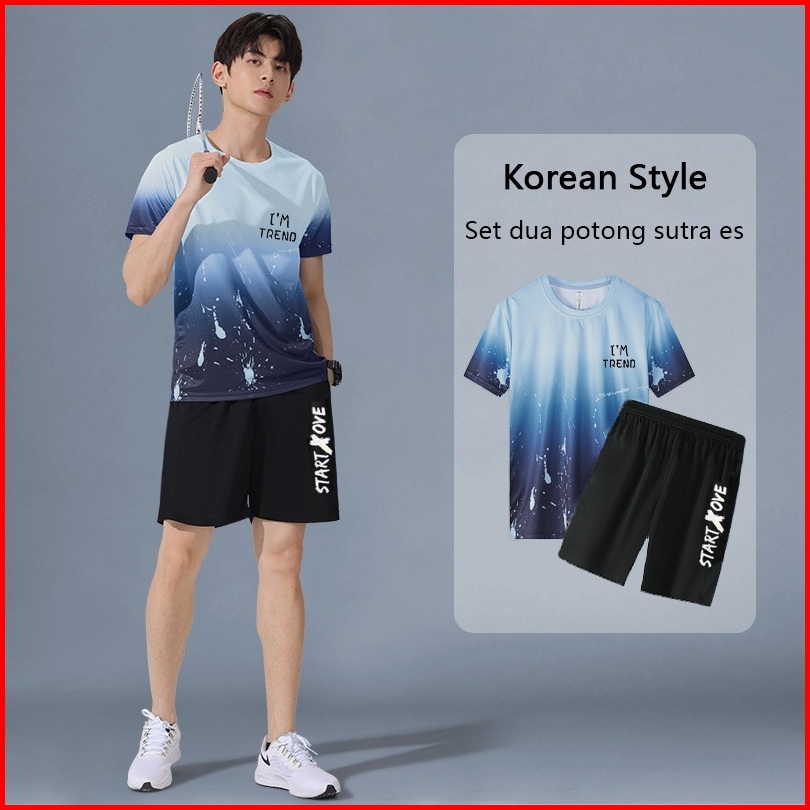 Keyboy Baju Olahraga Pria Setelan Running Set 2 Bagian Kaos Pria Lengan Pendek Dan Celana Pendek