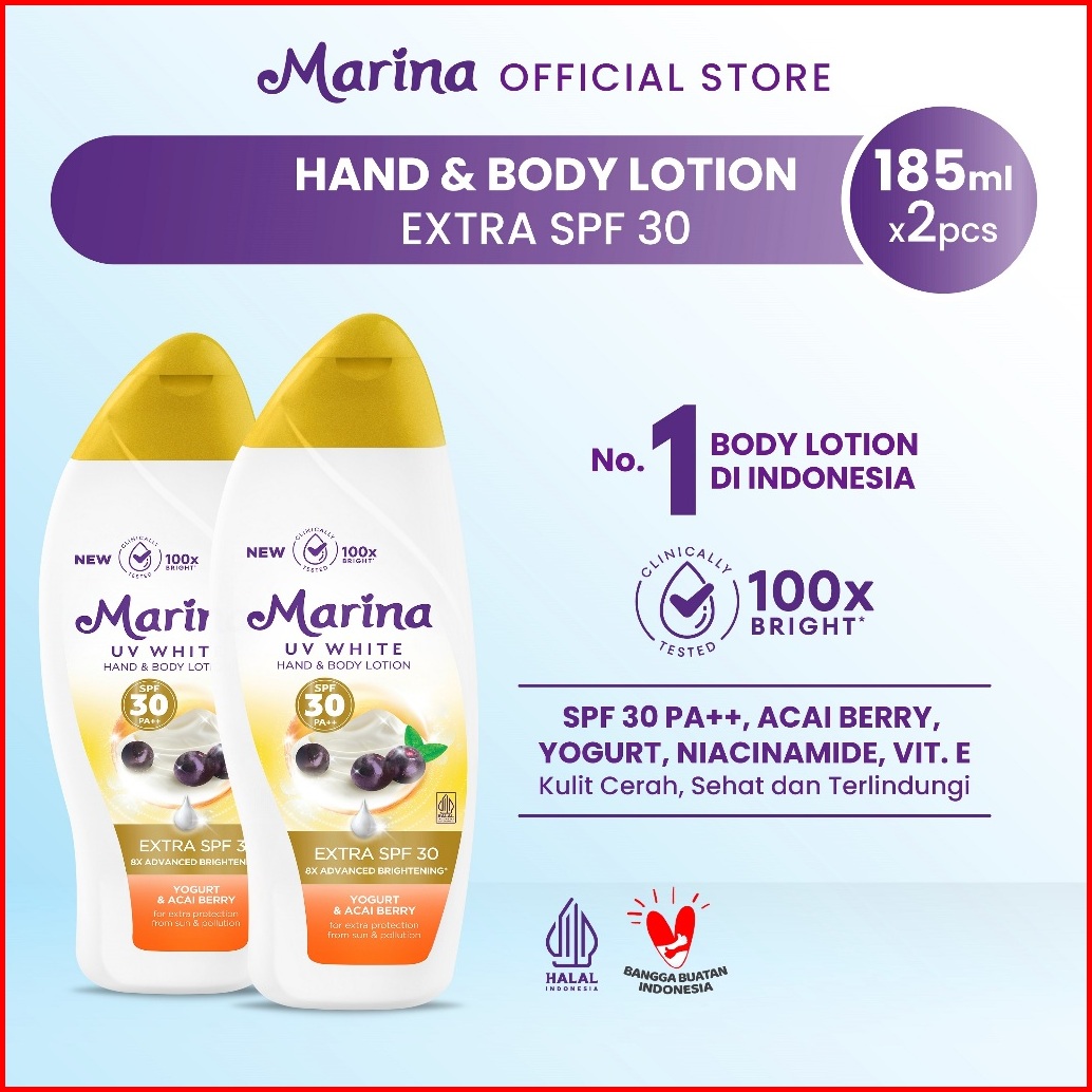 Marina Hand Body Lotion Uv White Extra Spf30 185ml 2pcs - Exp 09.2027