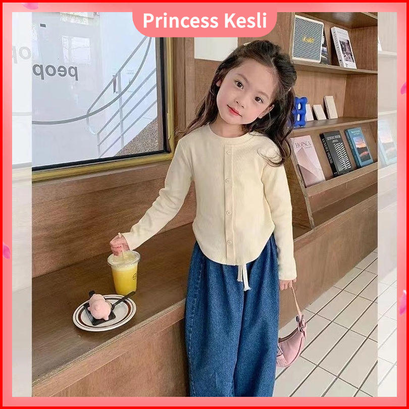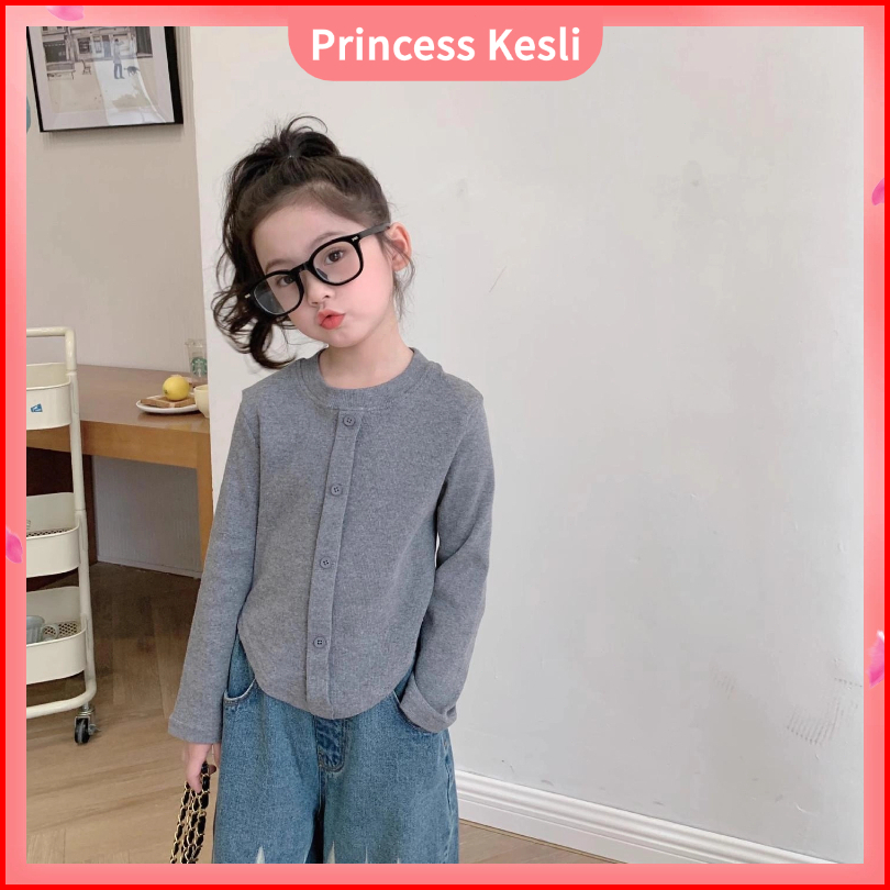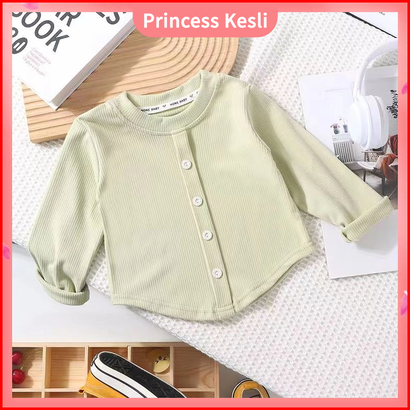 Princess Kesli Store 1-11 Tahun Croptop T-shirt Girls Spring Slim Candy Color Korean Style Halus Lembut Fashionable Lemb