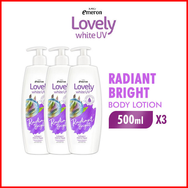 Emeron Lovely White Hand Body Lotion Uv Radiant Bright 500 Ml X3