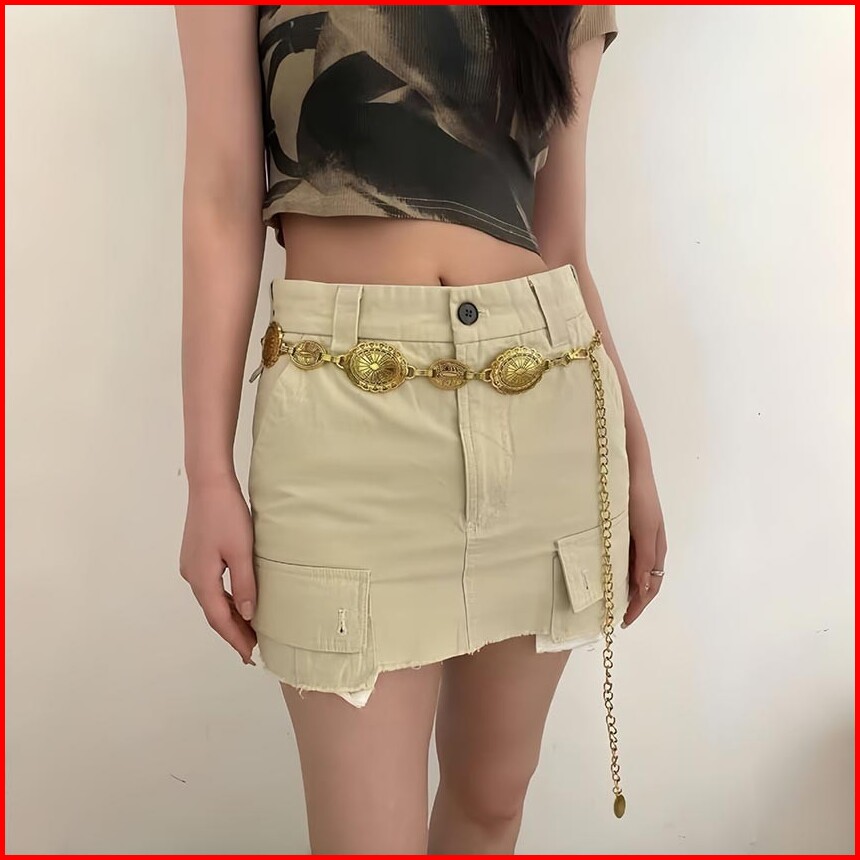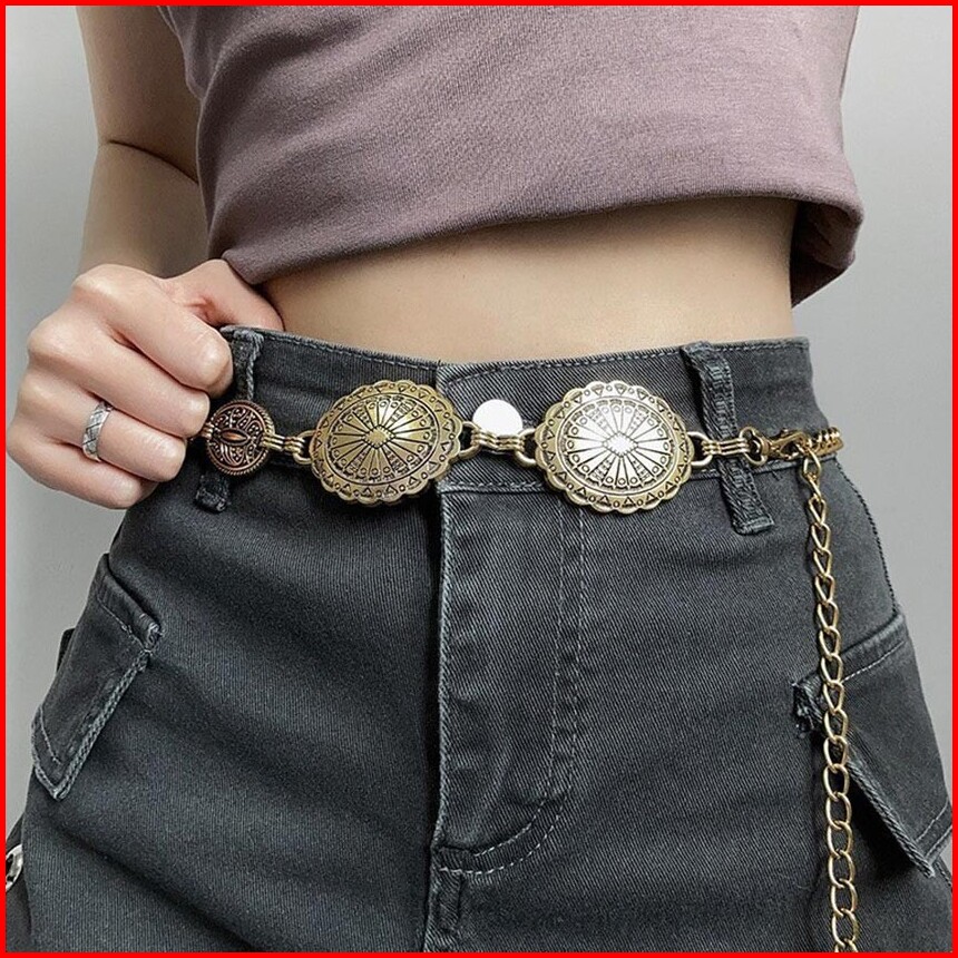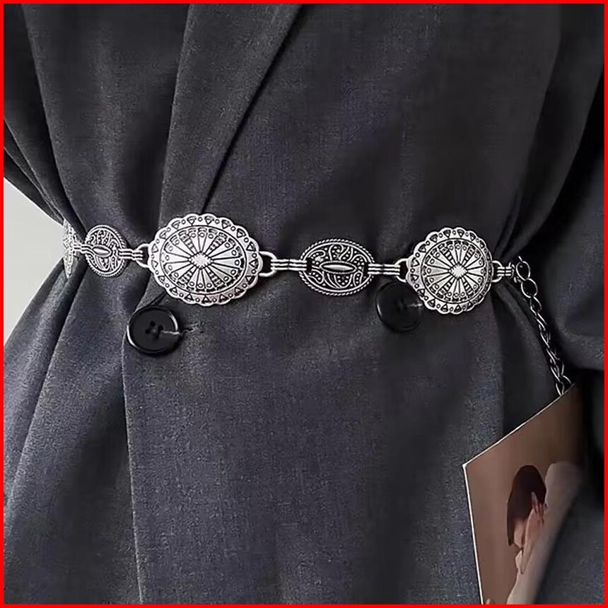 1set Ikat Pinggang Rantai Wanita Fashion Berukir Logam Belt Wanita Rantai Retro Sabuk Rantai Wanita