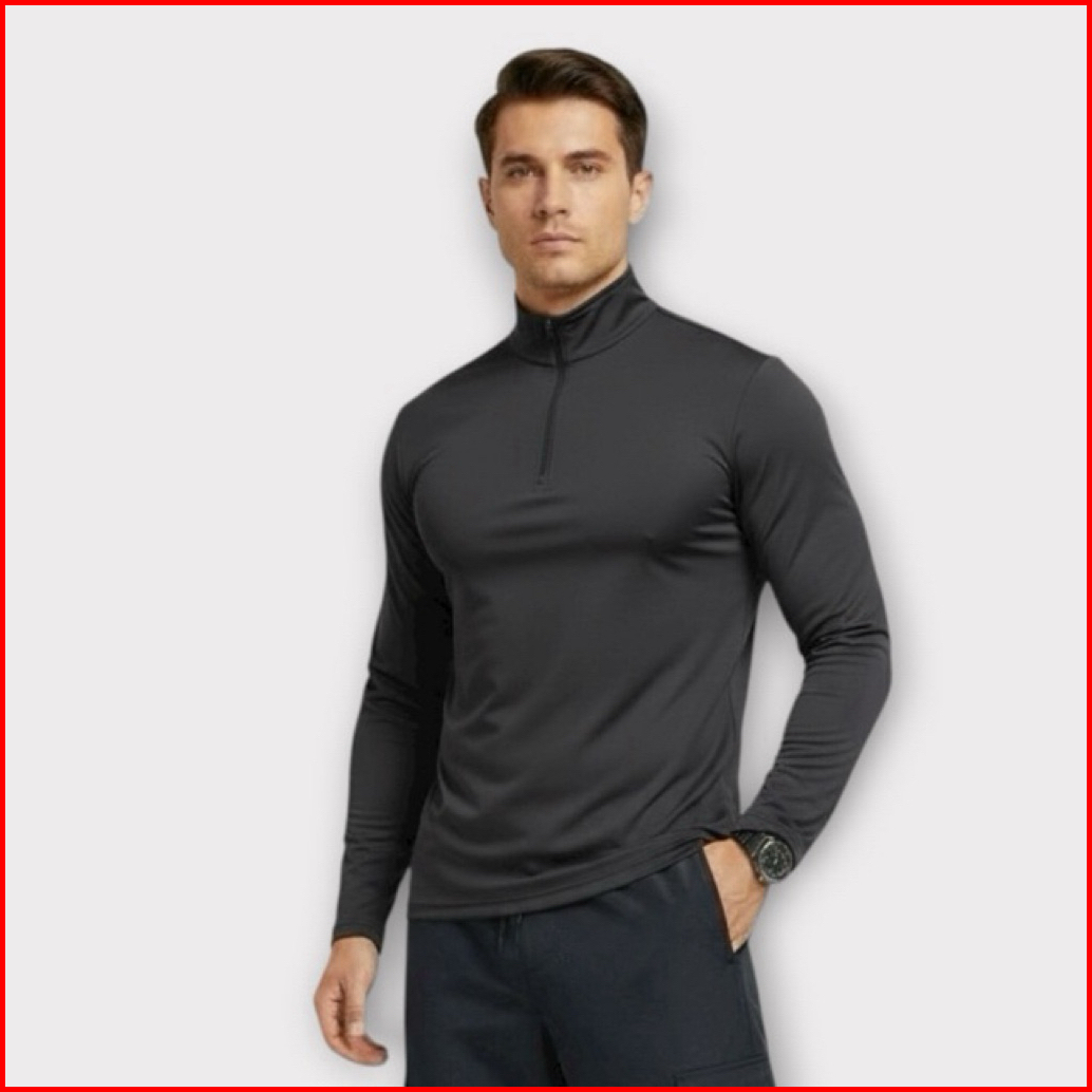Ahs - Kaos Baju Olahraga Lengan Panjang Half Zipper Long Sleeve Pria Wanita Gym Running Jogging Lari Fitnes