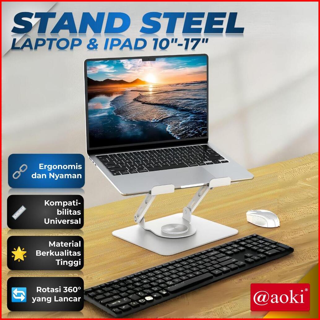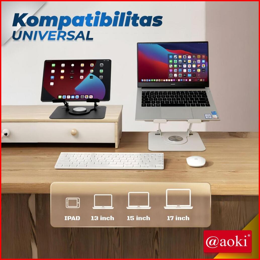 Aoki Laptop Stand Dengan 360 Rotasi Base Penstabil Komputer Ergonomis Untuk Meja Ketinggian Dan Sudut Dapat Disesuaikan