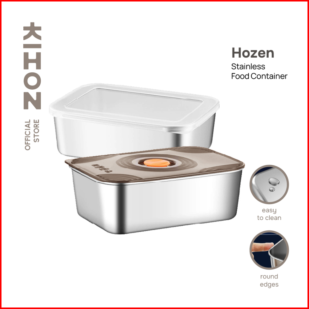 Kihon Hozen Stainless Food Container Wadah Makanan Anti Tumpah Easy To Clean Stackable Sus304