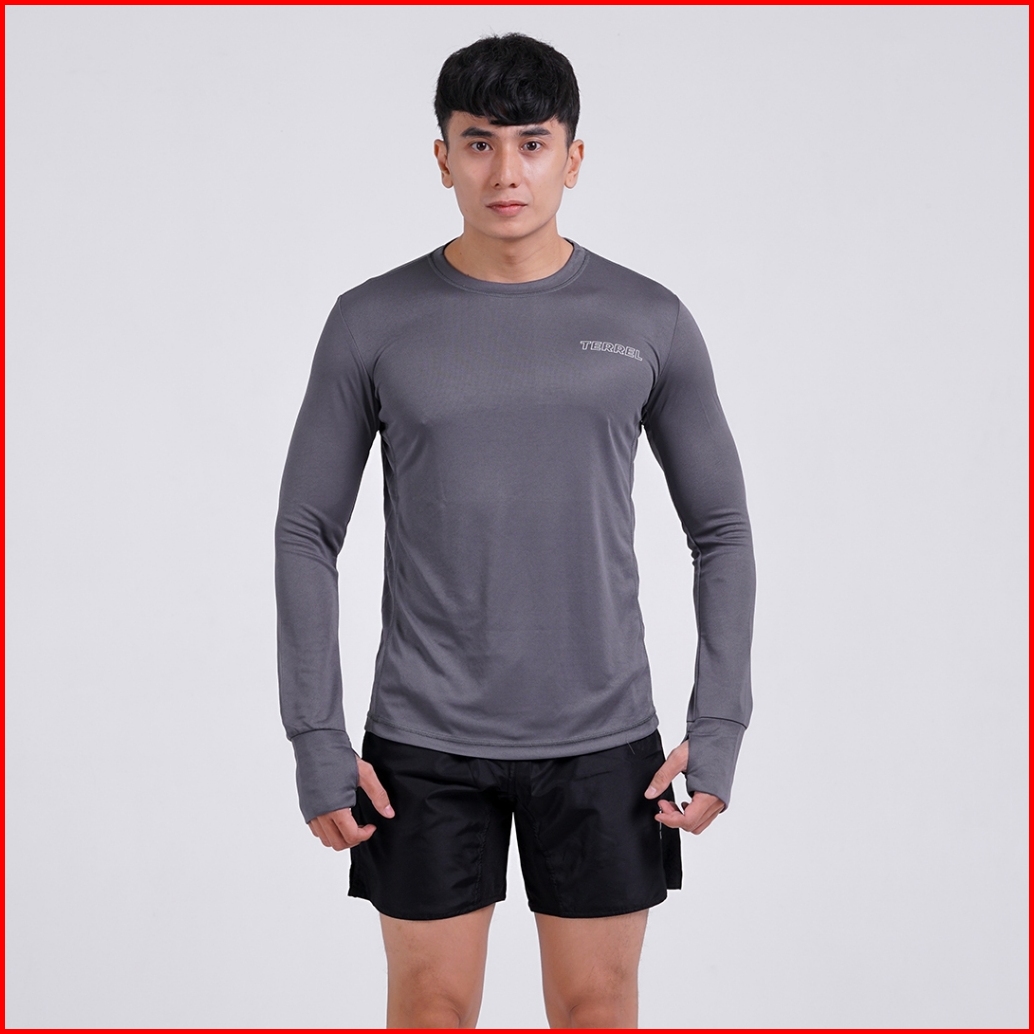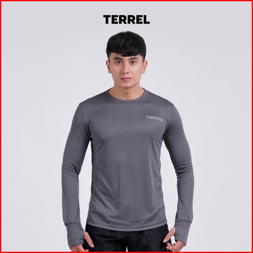 Terrel Sportswear Basic Long Sleeve Grey Baju Atasan Lengan Panjang Kaos Olahraga Dry Fit Pria Lari Running Gym