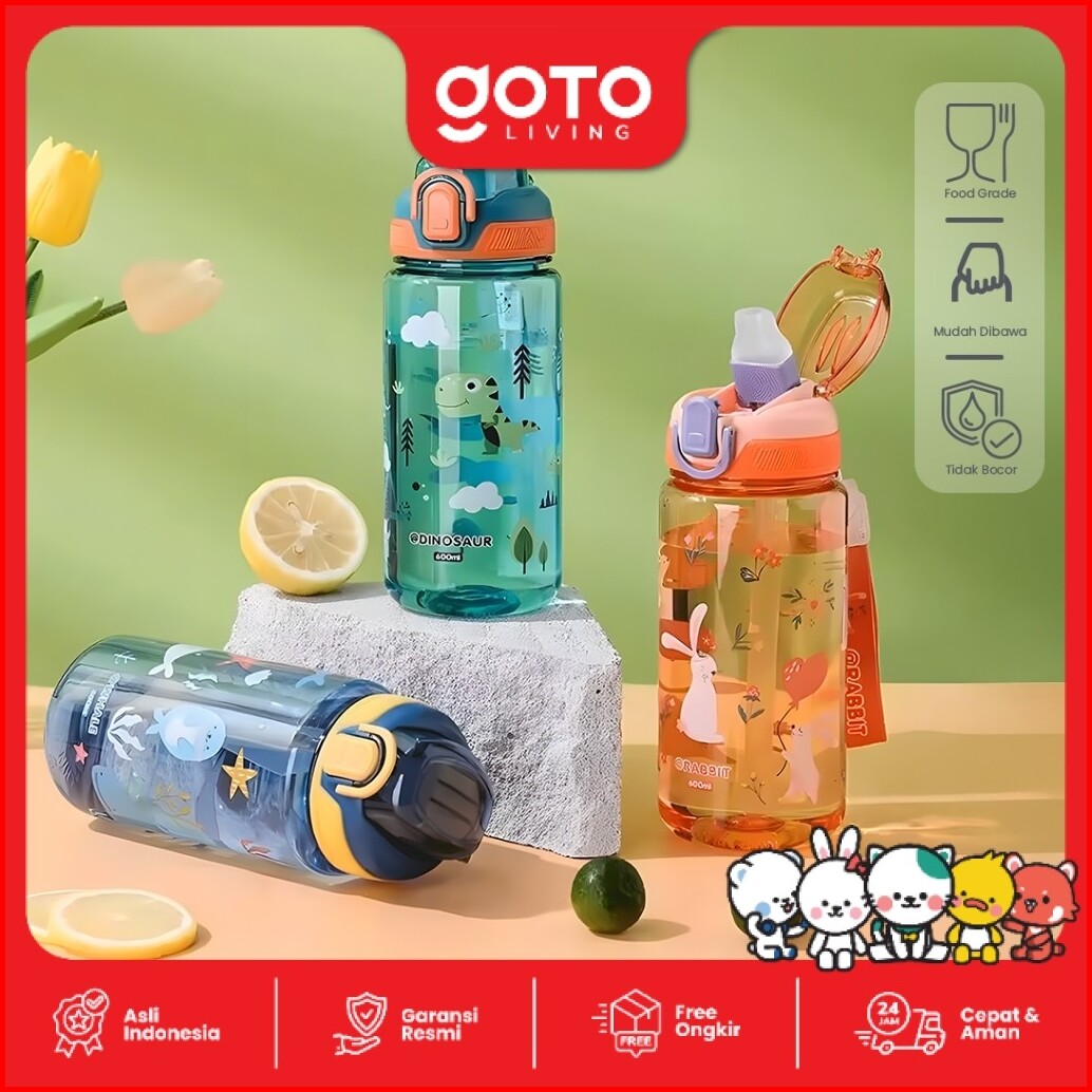Goto Clancy Water Bottle Anak Botol Minum Sedotan Lucu Karakter 600 Ml
