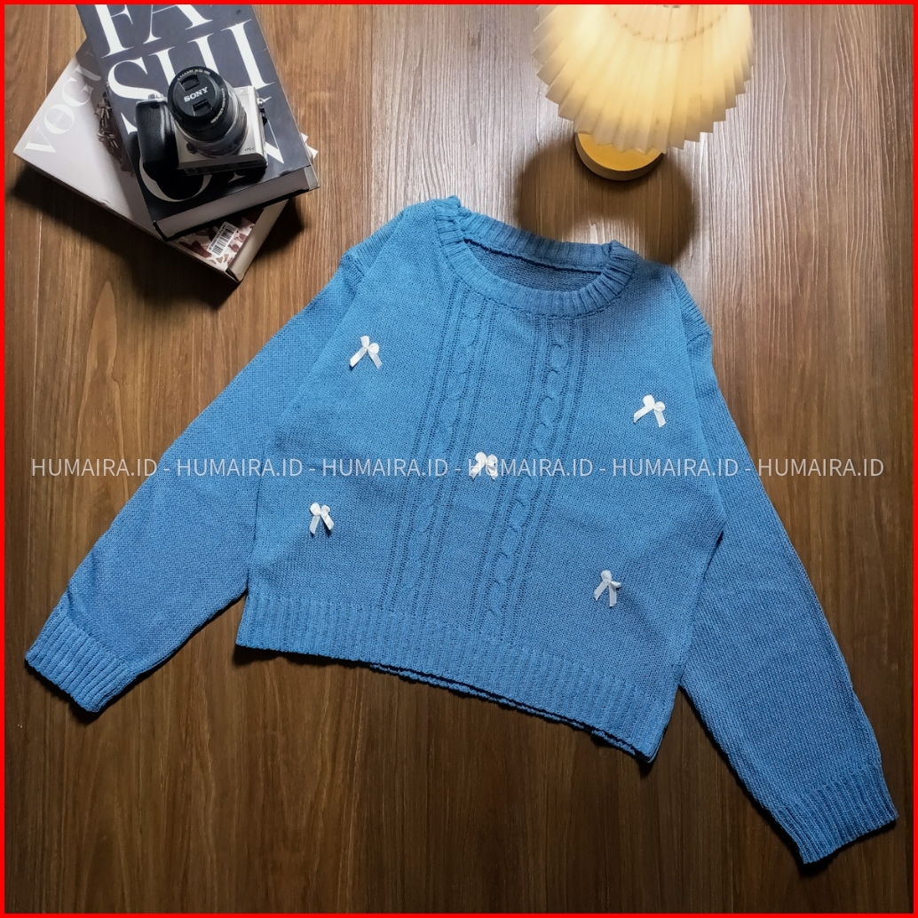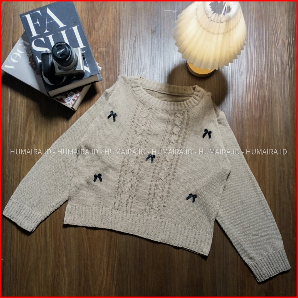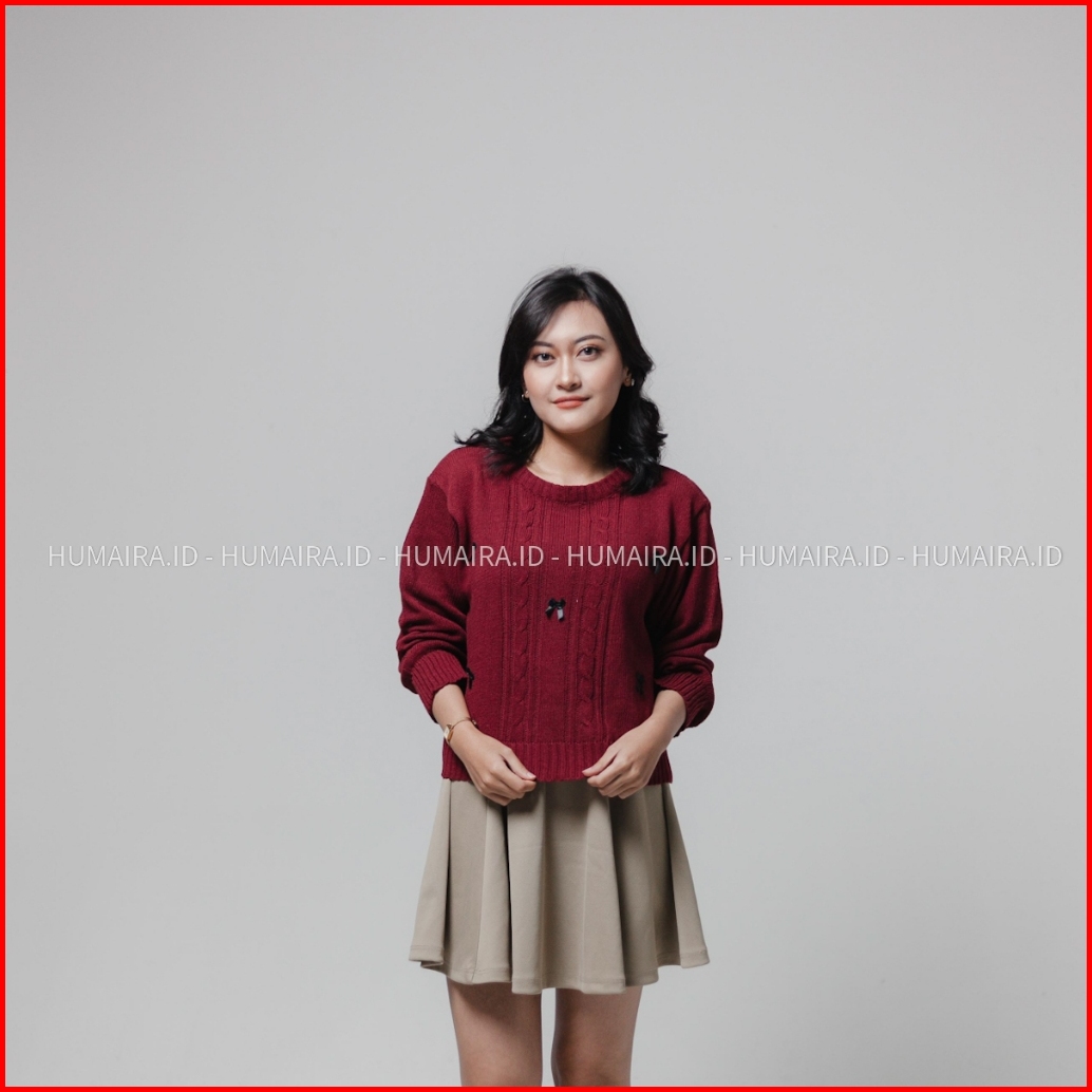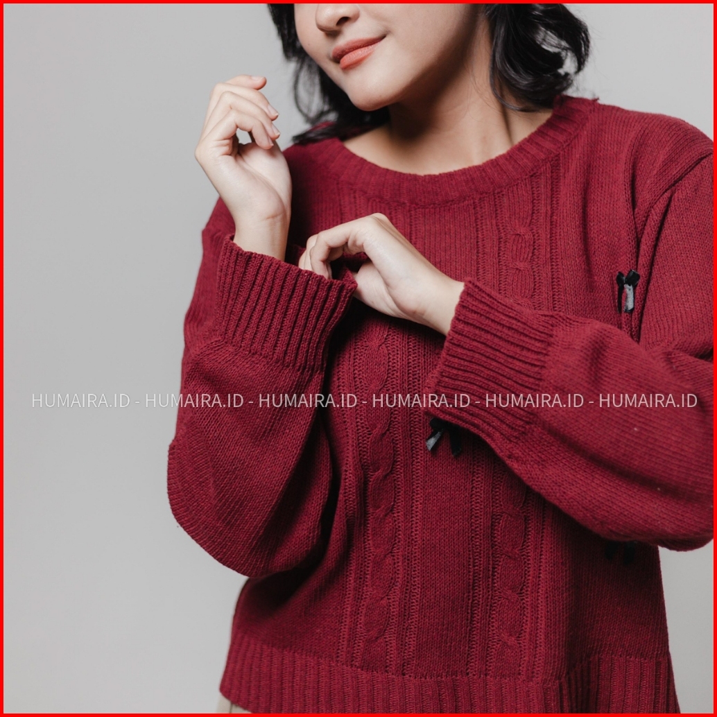 Euis Motif Cable Sweater Rajut Wanita Crop Atasan Wanita Korean Style