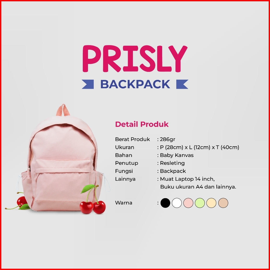 Studiobag - Prisly Backpack Tas Ransel Baby Kanvas Polos Ootd Wanita Sekolah Kuliah Lucu Aesthetic
