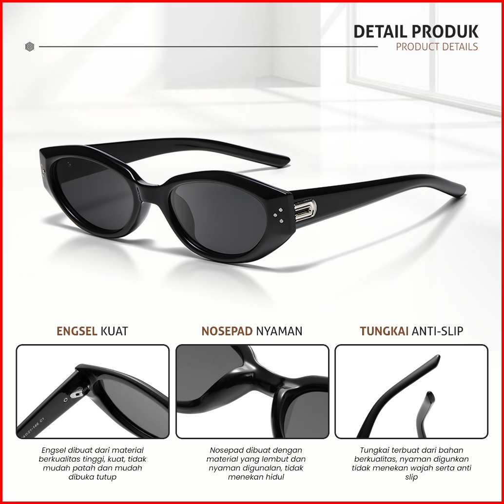 Colore.in Kacamata Hitam Sunglasses Korea Pria Wanita Fashionable Bentuk Cat Eye Bahan Tr-90 Polarized Uv400 Tr65