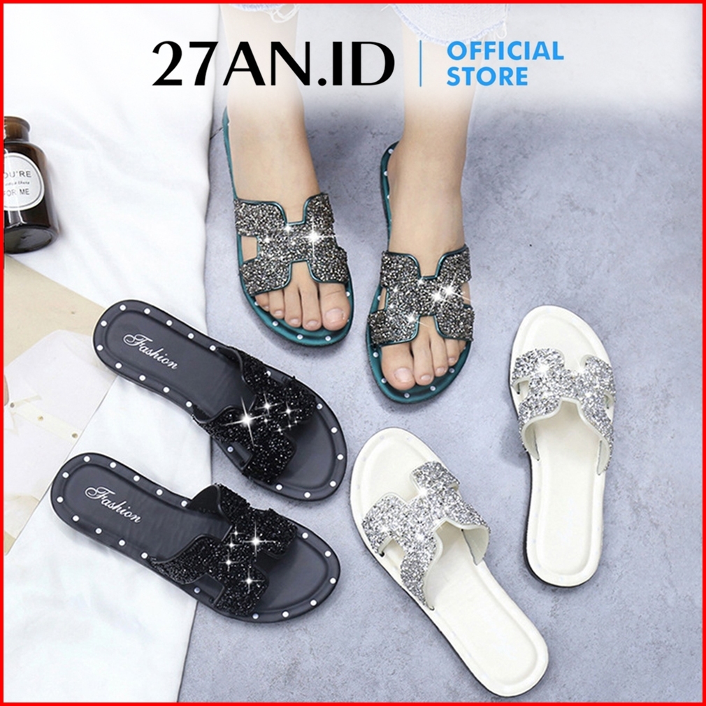 27an.id Sandal Wanita Sp17 Sandal Slop Motif Manik-manik Berkilau Fashion Korea Real Pict