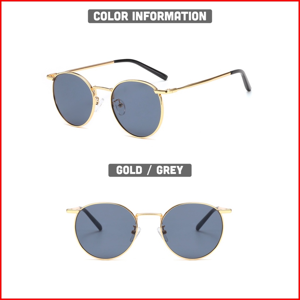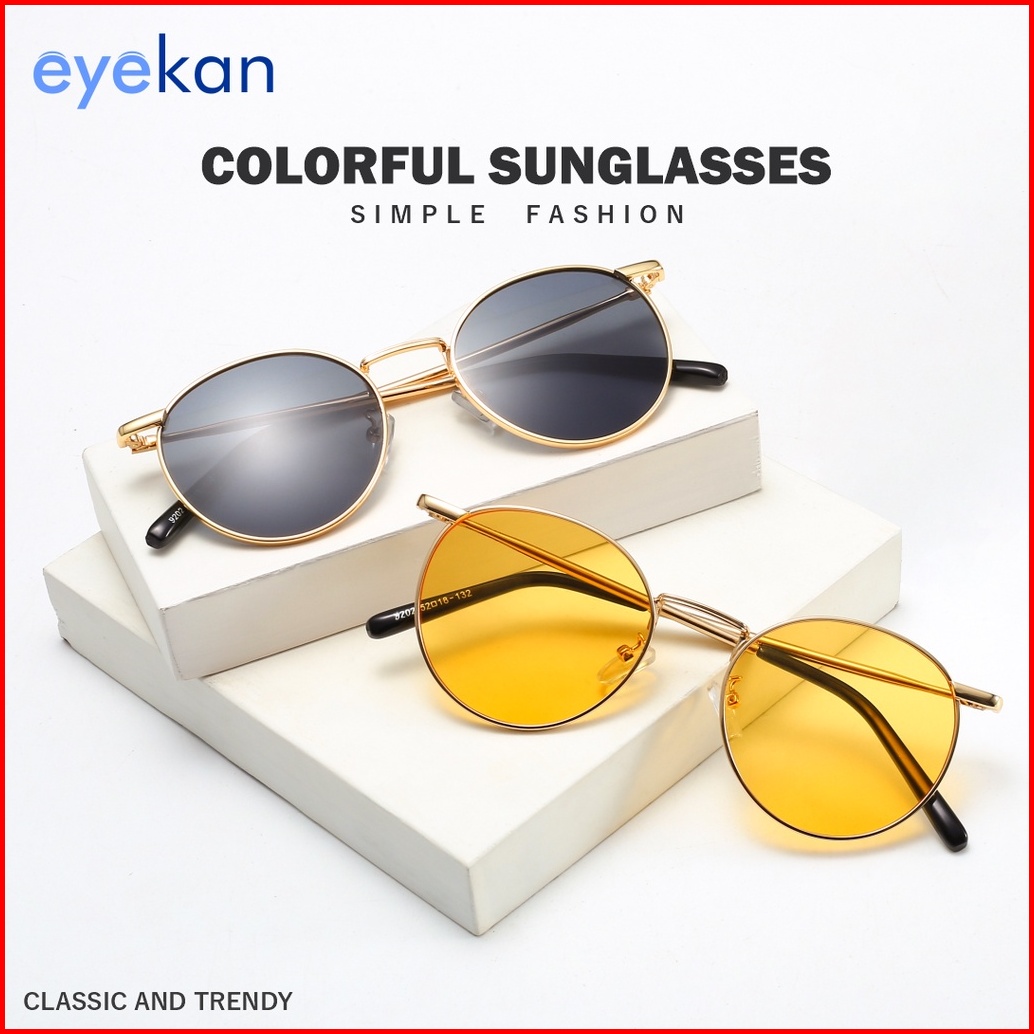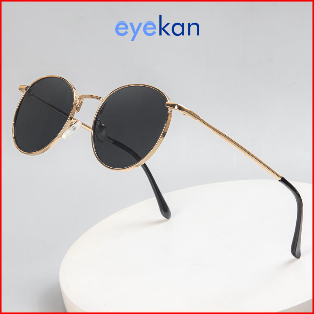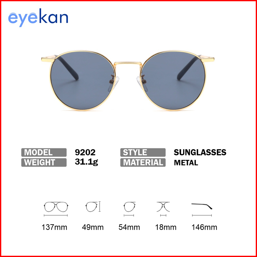 Eyekan Kacamata Hitam Retro Bulat Sunglasses Bisa Minus Anti Uv400 Metal Style Pria Wanita 9202