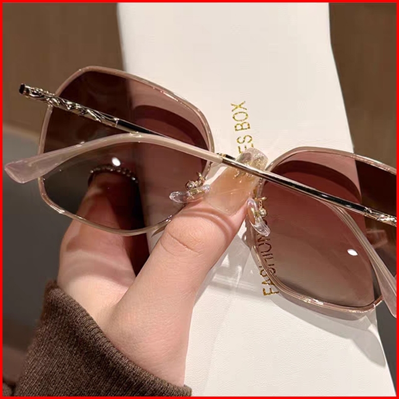 Kacamata Hitam Bingkai Besar Wanita Anti Uv Berbahan Logam