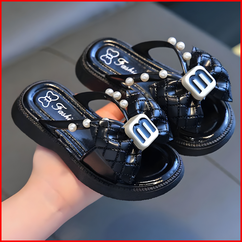 Sandal Fashion Anak Premium - Desain Kupu-kupu M Rantai Mutiara Untuk Si Princess