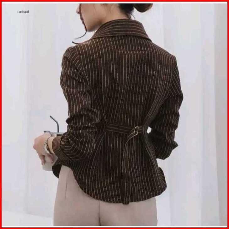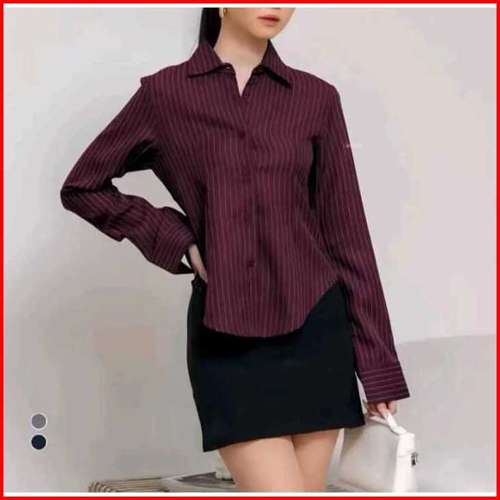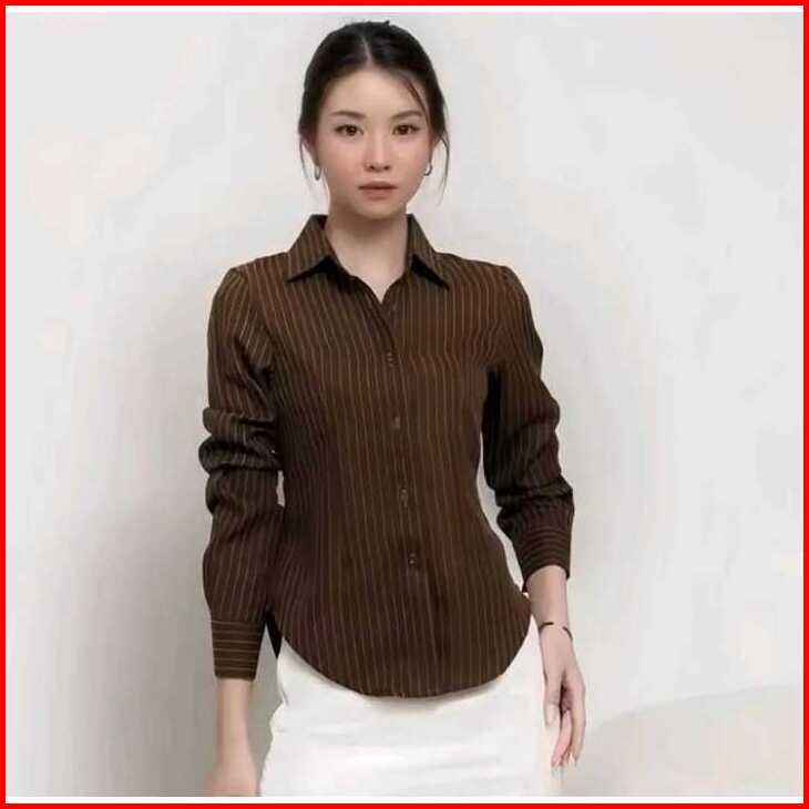 Kemeja Wanita Lengan Panjang Slim Fit Strip Salur
