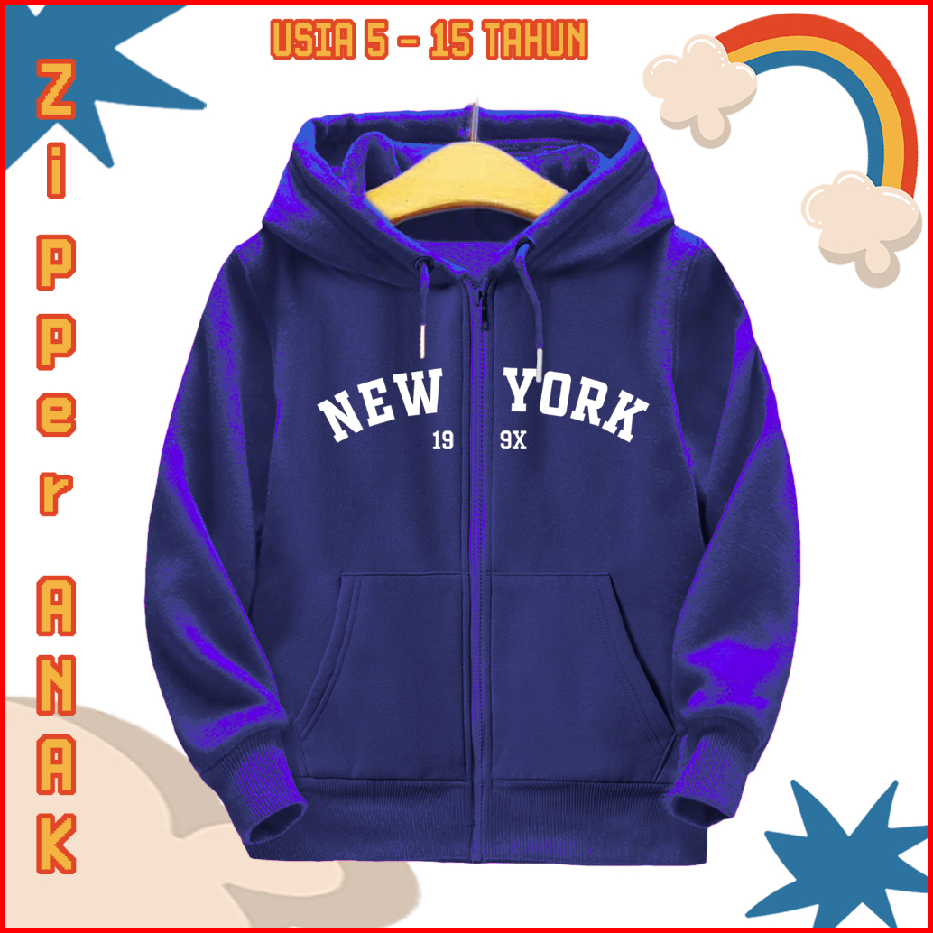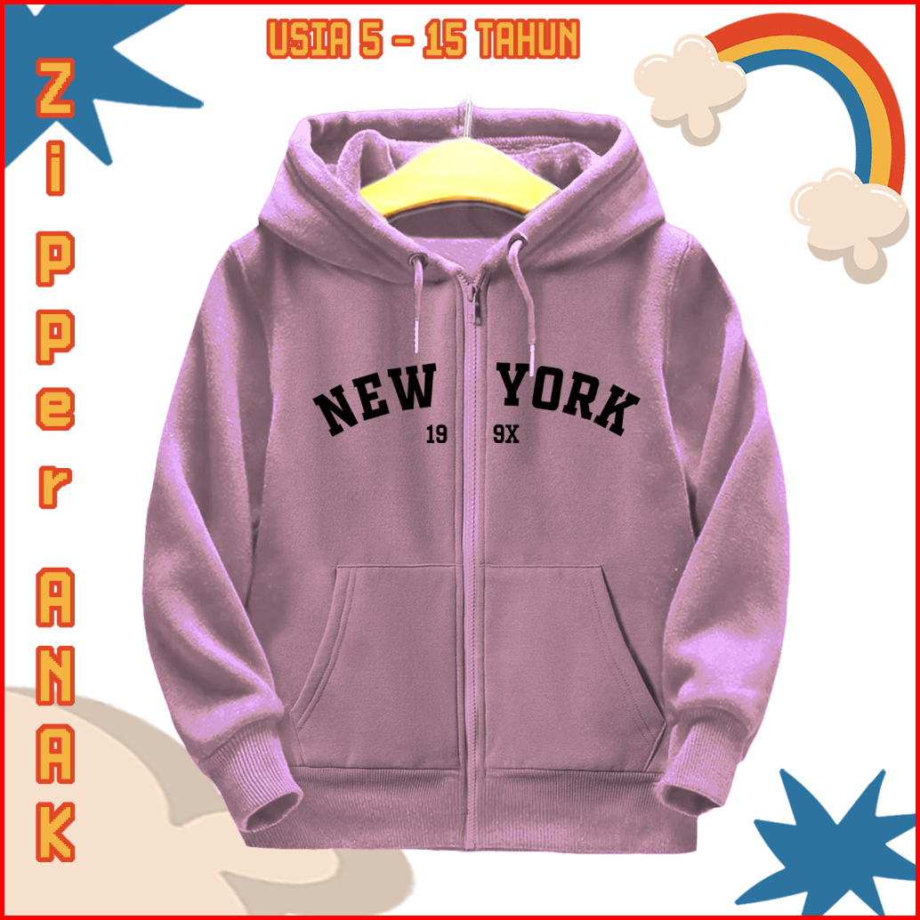 Simplejaket - Jaket Hoodie Anak Perempuan Usia 5 Sampai 15 Tahun Bahan Flecee Model Resleting Motif Newyork